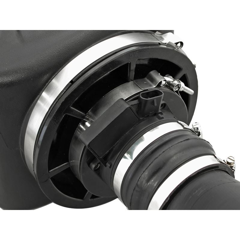 Momentum GT Aluminum Black Cold Air Intake System with Pro Dry S Filter (51-74101) by aFe. A custom CAD designed roto-molded housing made from heat resistant material eliminates the use of multiple components and ensures the coolest air intake charge available. A large clear sight window allows for filter inspection without removal of the air box. The roto-molded housing is made out of black cross-linked polyethylene. Carbon Fiber Accent are provided for car show quality and to further distinguish your vehicle from others.