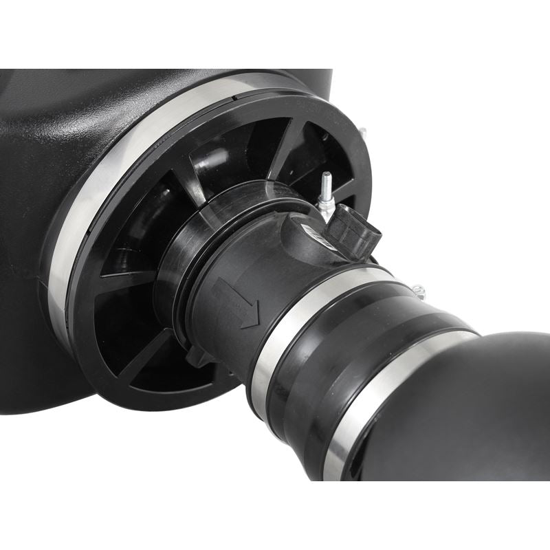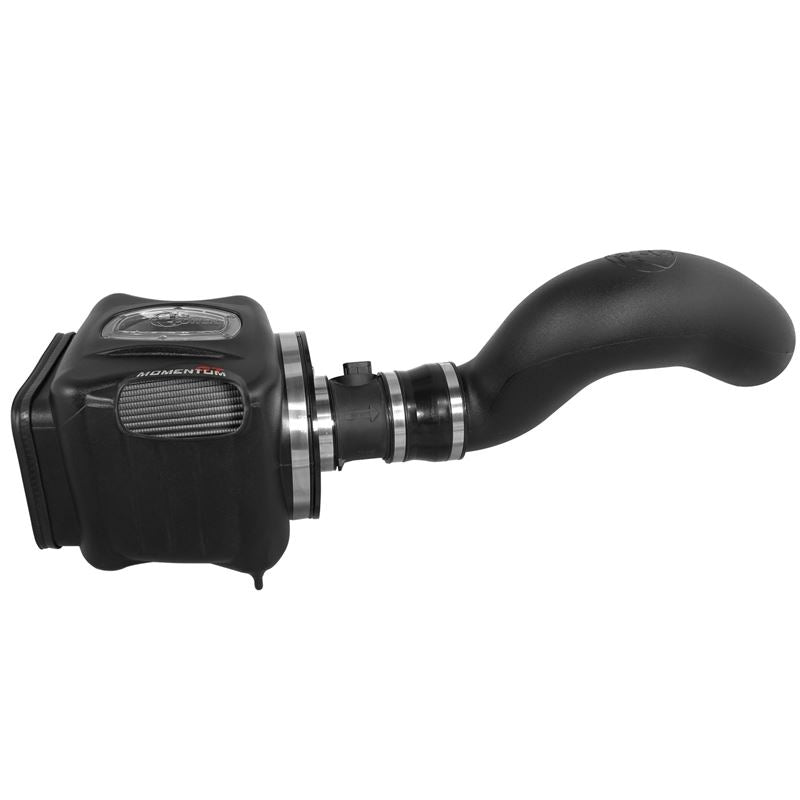 Momentum GT Aluminum Black Cold Air Intake System with Pro Dry S Filter (51-74102) by aFe. A custom CAD designed roto-molded housing made from heat resistant material eliminates the use of multiple components and ensures the coolest air intake charge available. A large clear sight window allows for filter inspection without removal of the air box. The roto-molded housing is made out of black cross-linked polyethylene. Carbon Fiber Accent are provided for car show quality and to further distinguish your vehicle from others.