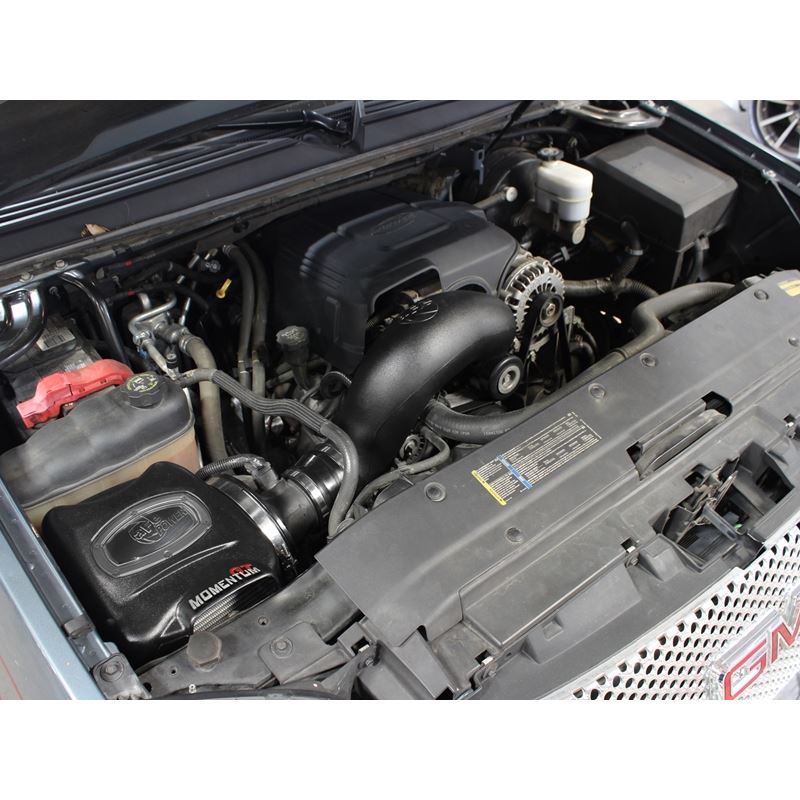 If you're on a budget or don't have a lot of time to work on your vehicle, don't think you have to forget about getting more performance or fuel mileage from your car or truck. The aFe Momentum Cold Air Intake System is inexpensive and can be installed in an hour or less with simple hand tools. This system replaces your factory air filter and airbox with your choice of aFe performance air filter and a one-piece open element airbox/heat shield that seals against the hood, isolating the filter from engine heat. The increased flow of cooler air to your engine will result in noticeable gains in power and performance. Cooler, denser air contains more oxygen, and more oxygen in your engine's air intake charge means better combustion, resulting in greater engine output.