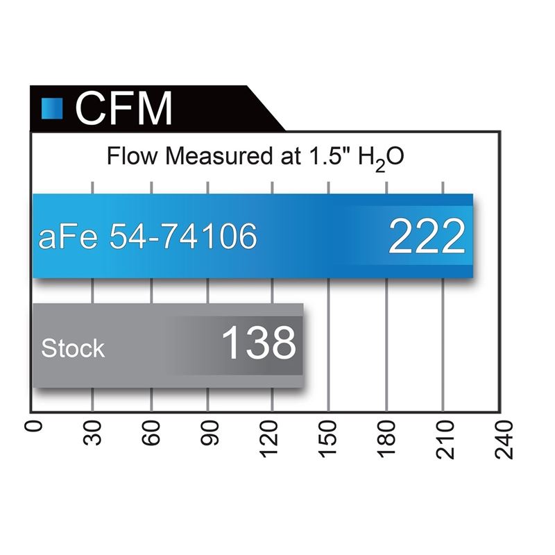 If you're on a budget or don't have a lot of time to work on your vehicle, don't think you have to forget about getting more performance or fuel mileage from your car or truck. The aFe Momentum Cold Air Intake System is inexpensive and can be installed in an hour or less with simple hand tools. This system replaces your factory air filter and airbox with your choice of aFe performance air filter and a one-piece open element airbox/heat shield that seals against the hood, isolating the filter from engine heat. The increased flow of cooler air to your engine will result in noticeable gains in power and performance. Cooler, denser air contains more oxygen, and more oxygen in your engine's air intake charge means better combustion, resulting in greater engine output.