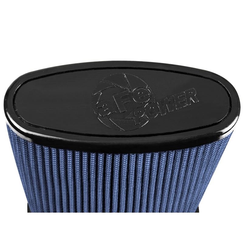 Magnum Flow Pro 5R Oval Tapered Blue Air Filter (Pair) (24-90109-MA) by aFe. This high flow Pro 5R air filters are constructed with 100% polyurethane on all sides and will out flow the stock paper filters for improved performance. Five layers of progressively finer cotton media provides maximum air flow. Washable and reusable for multiple cleaning cycles, the tall, open and evenly spaced filter pleats provide excellent dust holding capacity for longer service cycle between cleanings. An integrated urethane bump seal insures a tight, leak-free seal over the life of the filter. The aFe filter system increased air flow 25% over the factory air filter set increasing horsepower, torque and improving throttle response.