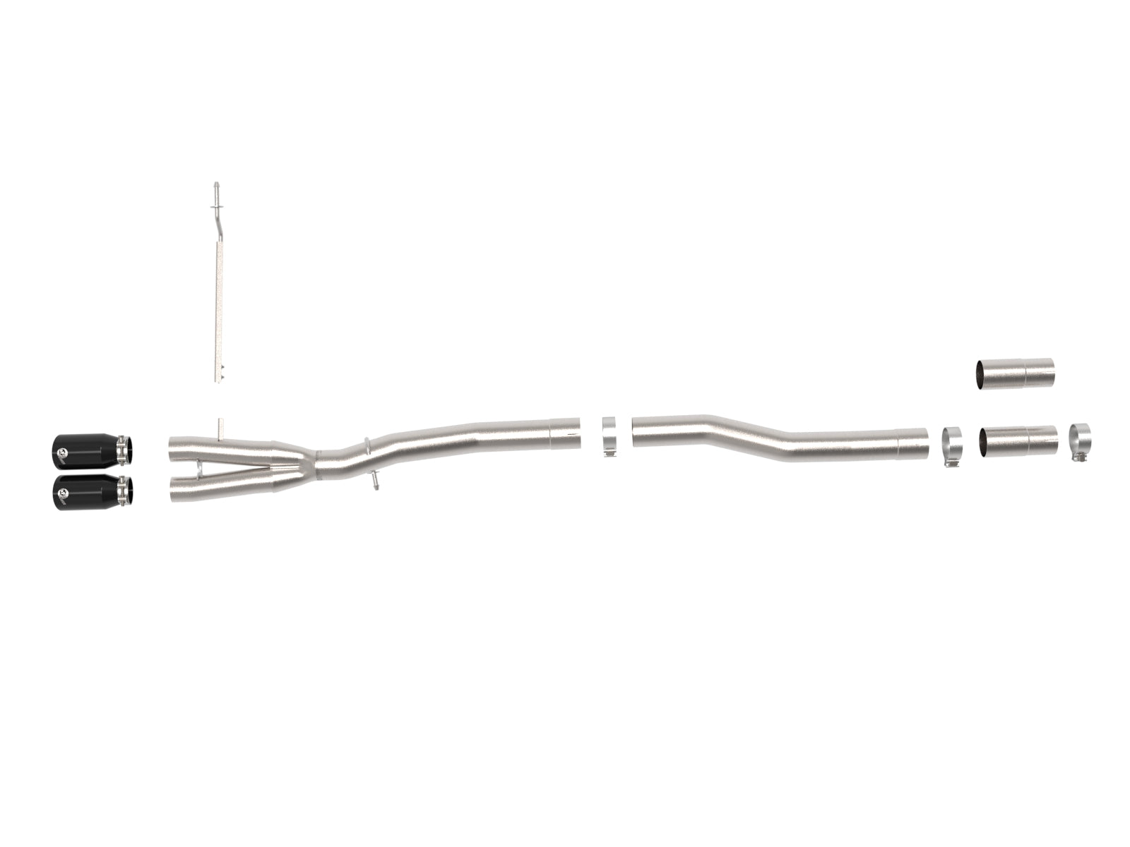 This cat-back exhaust system is constructed of 3 IN - 2-1/2 IN mandrel-bent 304 stainless steel tubing for maximum strength and durability. This system features a 304 stainless steel muffler, producing a aggressive sound. Finishing off this exhaust system are dual 3-1/2 IN diameter 304 stainless steel clamp-on exhaust tips. The tips features a laser etched aFe POWER logo for a unique style. This system produces an aggressive sound unleashing all available horsepower and torque. Utilizing factory style this system is a direct bolt-on system, which requires no cutting or modifications for a hassle-free installation. This cat-back exhaust system uses a heavy duty flex pipe with an internal interlock liner for added strength and durability. State-of-the-art computer-aided design technology is utilized for precise vehicle fitment. 100% MIG-Welded for race-proven strength and durability.