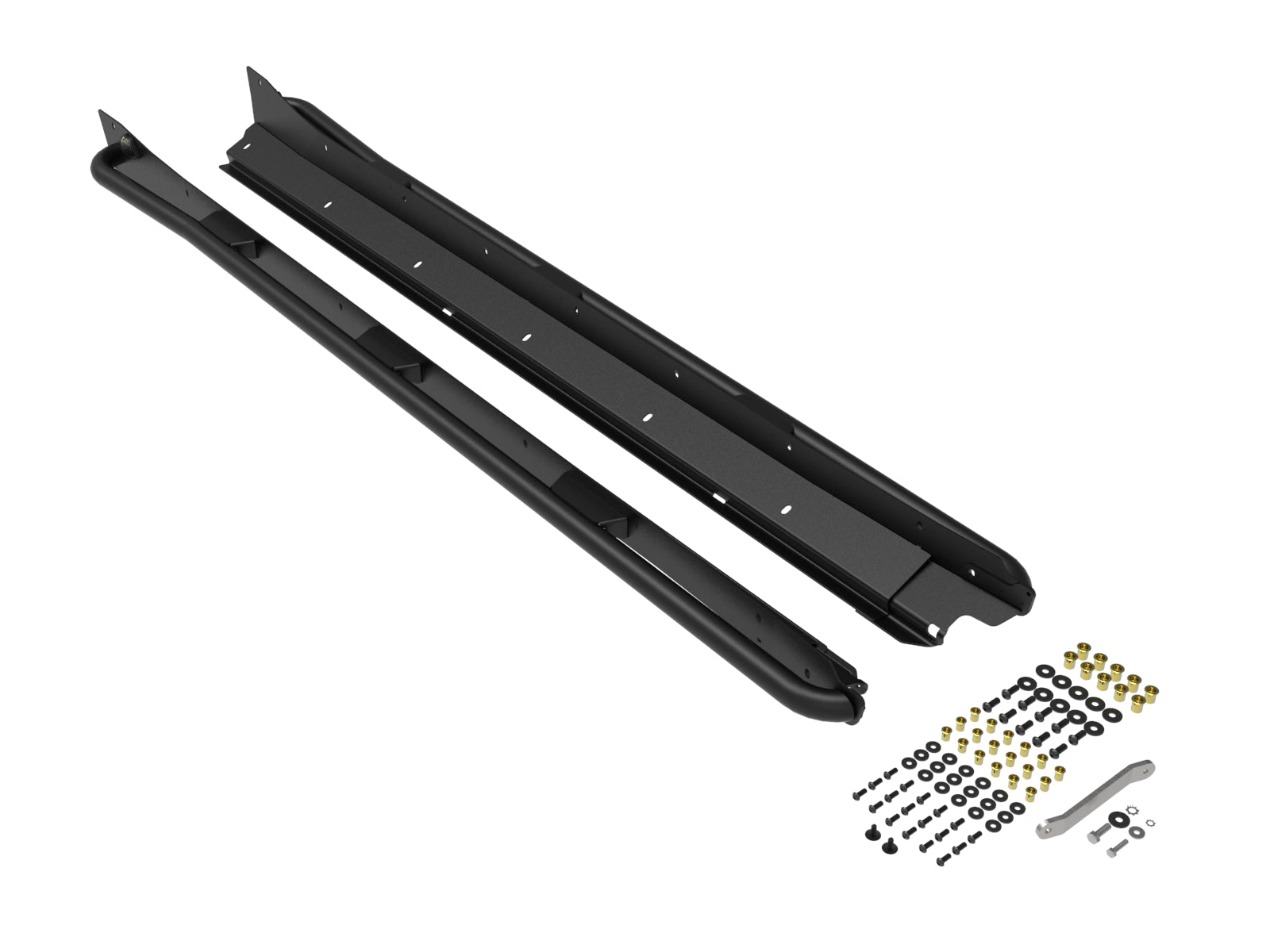 Introducing the Subaru Crosstrek Terra Guard Slider, the ultimate body protection for your Subaru. Crafted from heavy-gauge steel, this rugged upgrade replaces the factory lower plastic cladding, ensuring ultimate protection when navigating rocky terrains. With its innovative design, the bottom wraps around the pinch seam for added strength, while maintaining no loss of ground clearance. The entire pinch seam rail can even be used as a jacking point, providing versatility on your off-road adventures. The slider also offers a safe and secure platform to access your rooftop storage and gear. Upgrade your Subaru Crosstrek and conquer any terrain with confidence. Slider is crafted from 1/8 inch steel plate that forms to the rocker panel, wrapping around the pinch rail with 1/8 inch wall tubing outer profile for ultimate protection when sliding on or pivoting around obstacles. Our Terra Guard Trail Slider matches the factory rocker panel profile increasing over all ground clearance. Entire pinch seam rail can be used as a jacking point. Our large step pad area provides a secure platform to gain access to roof top storage and gear. Replaces factory lower plastic cladding, utilizing original mounting points with no drilling or cutting required. Slotted drain holes in pinch seam rail allow for water drainage. Finished in a textured black powder coating not only ensures long-lasting durability but also adds a rugged look to your vehicle's appearance. PATENT PENDING
