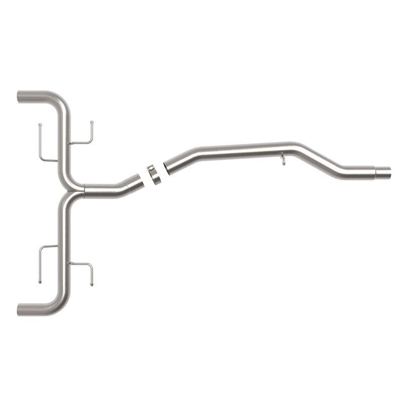 MACH Force-Xp 2 IN to 2-1/2 IN Stainless Steel Axle-Back Exhaust System.This system produced gains of up to +10 HP and +12 lbs. x Ft. TQ., as measured on our in-house dyno. This axle-back exhaust system is constructed of 3 IN - 2-1/2 IN mandrel-bent 304 stainless steel tubing for maximum strength and durability. This system produces an aggressive sound unleashing all available horsepower and torque. Utilizing factory style hangers this system is a direct bolt-on system, which requires no cutting or modifications for a hassle-free installation. A mitered merge collector is used to decrease turbulence and increase exhaust velocity resulting in increased horsepower, torque and improved throttle response. Utilizing state-of-the-art computer-aided design technology, this exhaust system is designed for custom, high tolerance factory fitment. 100% MIG-Welded for race-proven strength and durability.