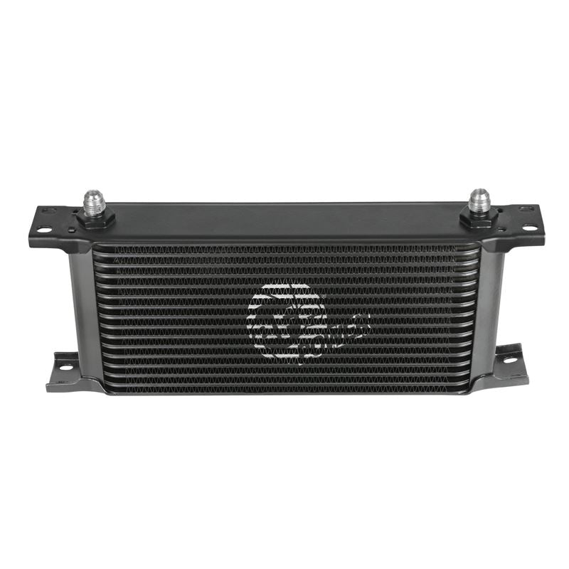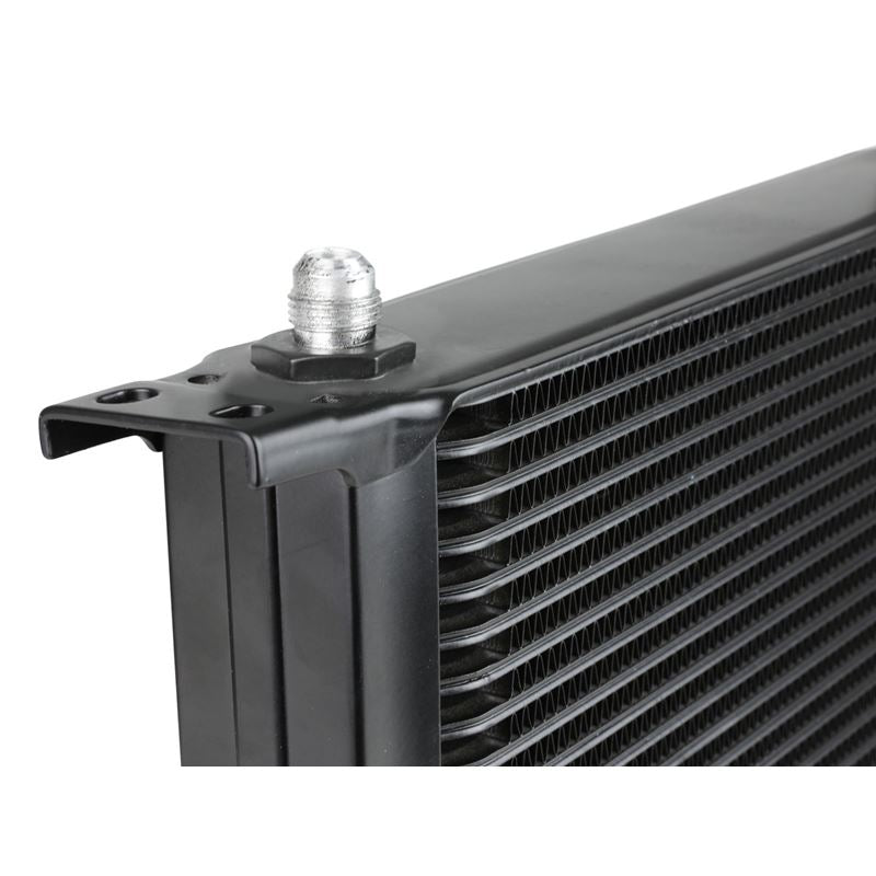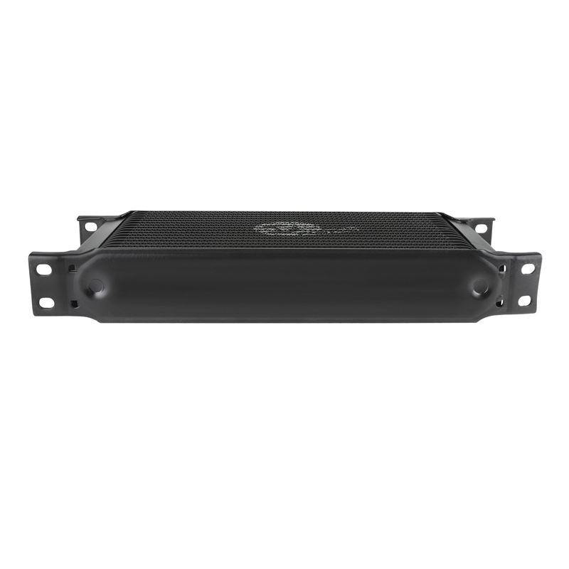 This BladeRunner Transmission Oil Cooler uses a durable brazed all-aluminum stacked-plate construction that allows for greater efficiency and lower pressure drop than a standard tube-fin design. Designed to work in-line with your vehicle's original equipment. Provides lower transmission oil temperatures to reduce transmission wear and extend life of oil viscosity. The BladeRunner Transmission Oil Cooler kit makes installation simple with plug-and-play transmission line adaptors, direct-fit mounting brackets, stainless steel hardware, and leak-proof AN connections. No cutting or alteration of factory hardware is required. Feature a durable black finish with a laser-etched aFe POWER logo on the front and includes black-anodized billet aluminum AN fittings for a sleek appearance.