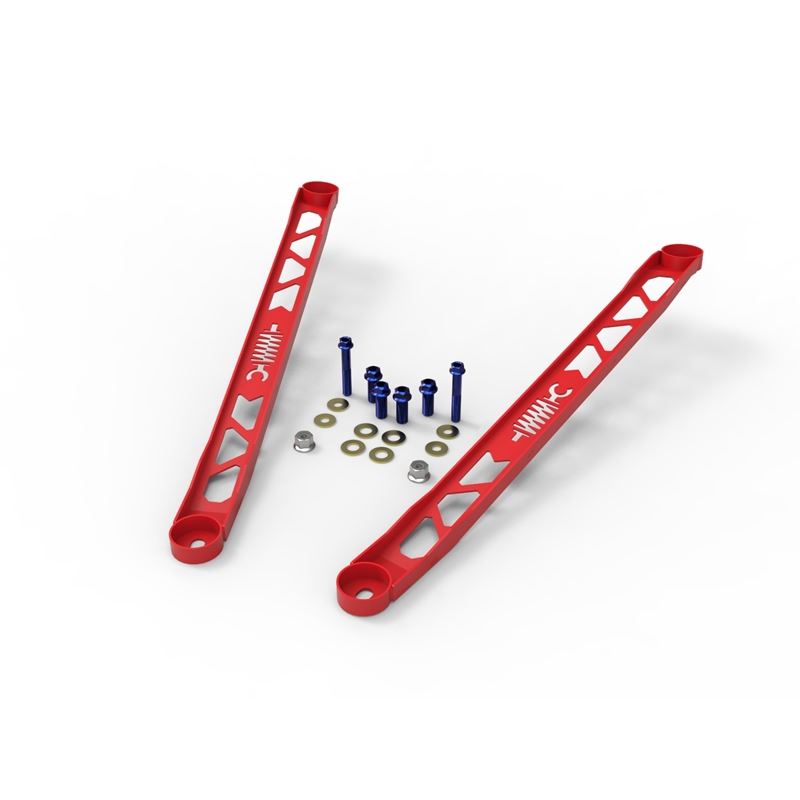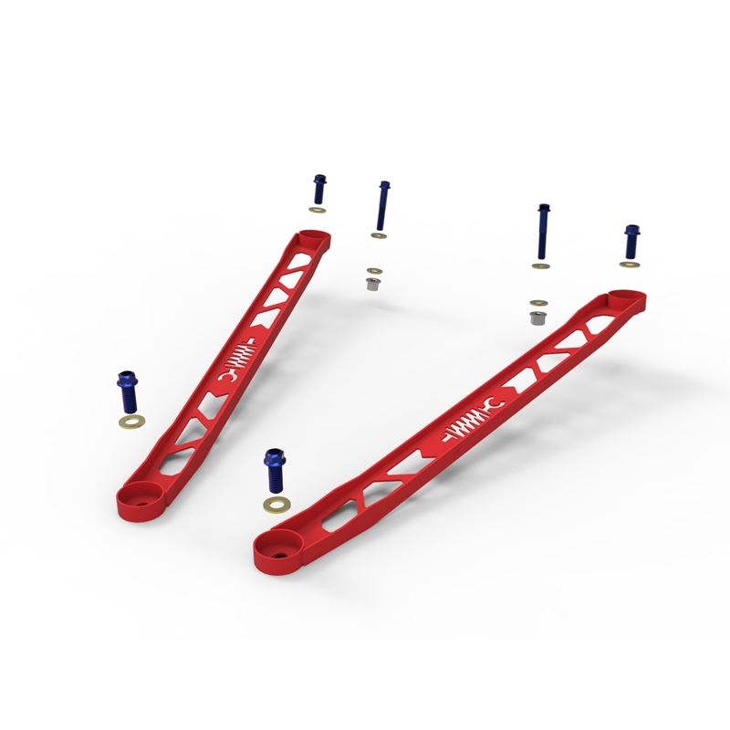 aFe CONTROL Front Suspension Strut Brace Red.aFe CONTROL fabricated suspension strut braces will stiffen up your chassis and give your engine bay a unique look. Made from 304 stainless steel, the I-beam design is TIG welded to form a lightweight brace that increases the front end rigidity and improving turn-in response.These braces are laser cut from 14-gauge 304 stainless steel and are CNC bent for a perfect fit. This kit includes grade 5 titanium mounting bolts that have an eye-catching burnt-blue anodizing. We include (4) M10 bolts for vehicles that already have factory braces and an additional (2) M8 thru bolts & nuts for the models that did not come with braces from the factory.
