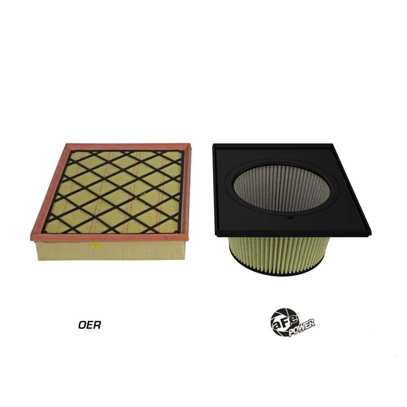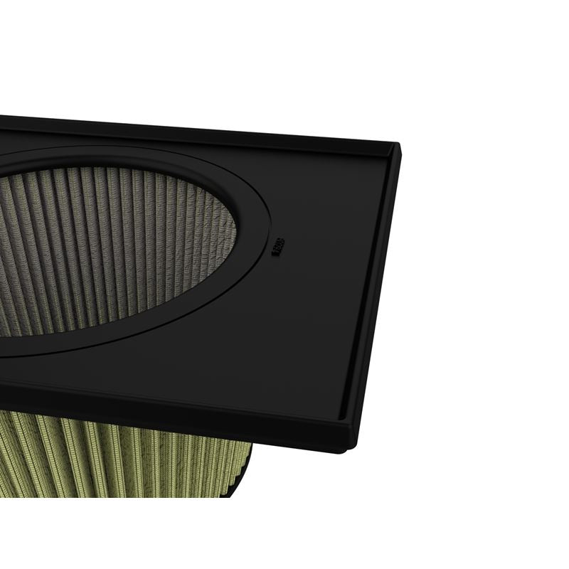 Magnum FLOW Inverted Replacement Air Filter (IRF) w/ Pro GUARD 7 Media.This filter features seven layers of hybrid media for maximum protection. The patented combination of oiled cotton gauze with synthetic material allows this media to thrive in the dustiest and dirtiest environments imaginable. Pro-GUARD 7 filters are easily recharged with aFe's POWER CLEANER and gold air filter oil. aFe POWER performance air filters use a rounded, evenly spaced pleat design which allows for more usable filter surface area, providing increased flow and greater dust holding capacity. The unique IRF (Inverted Replacement Filter) design utilizes the depth of the OE airbox, providing maximum surface area, airflow, and performance, all within the stock filter housing. This pliable sealing surface conforms to even the most uneven filter housing, making for a perfect filter fit and sealing surface every time. This design eliminates the use of gaskets or sealants and always goes back to its original form.