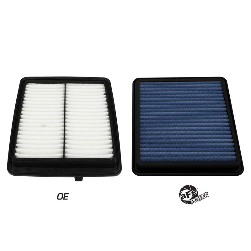 Magnum FLOW OE Replacement Air Filter w/ Pro 5R Media.This filter features five layers of pre-oiled cotton gauze media to provide maximum performance. Its progressive layering allows the filter to flow at high levels even when dirty. This media is perfect for street and/or track use. Pro 5R filters are easily recharged with aFe's POWER CLEANER and blue air filter oil. aFe POWER performance air filters use a rounded, evenly spaced pleat design which allows for more usable filter surface area, providing increased flow and greater dust holding capacity. This pliable sealing surface conforms to even the most uneven filter housing, making for a perfect filter fit and sealing surface every time. This design eliminates the use of gaskets or sealants and always goes back to its original form. All aFe POWER flat panel performance air filters are constructed with a full 360-degree polyurethane frame. Unlike other materials that degrade after repeated heat cycles in an engine bay, polyurethane maintains its original molded shape.
