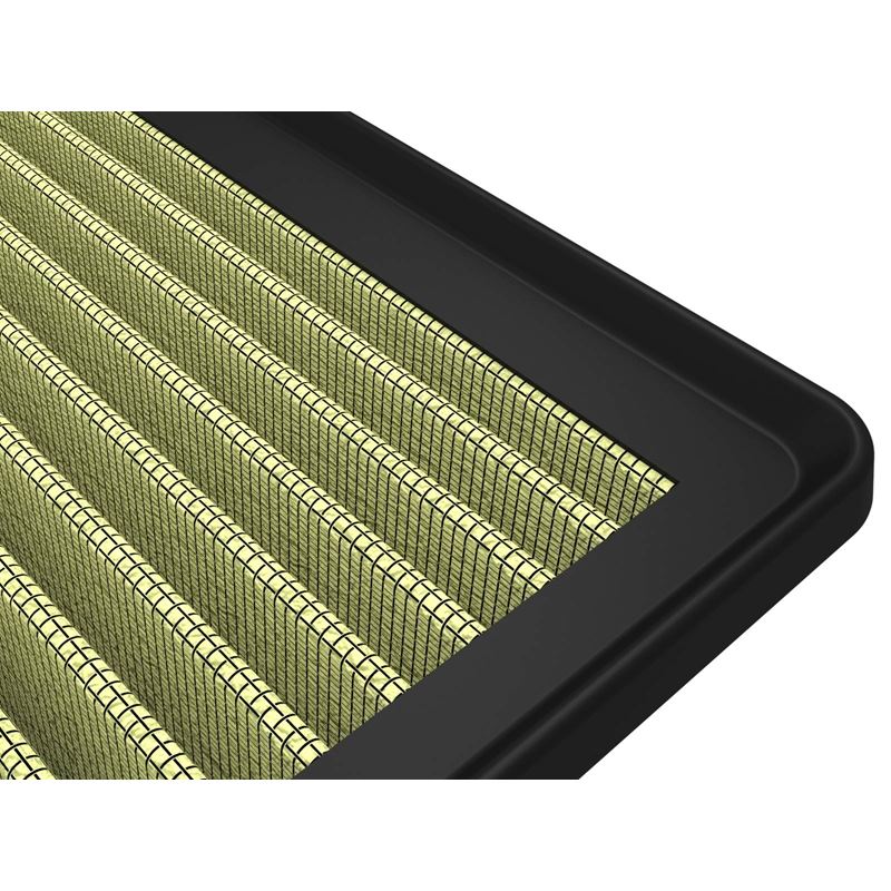 Magnum FLOW OE Replacement Air Filter w/ Pro GUARD 7 Media (Pair).This filter features 5-layers of progressively Finer Oiled Cotton Gauze and 2-layers of Finer Porosity Synthetic non-woven media for highest filtration efficiency for extreme dust environments. (US PAT 06811588). aFe performance air filters use a rounded, evenly spaced pleat design which produces more usable filter surface area for increased flow and greater dust holding capacity. This pliable sealing surface conforms to even the most uneven filter housing. This design eliminates the use of gaskets or sealants. The soft urethane construction always goes back to its original form so you will never compress the bump seal. This makes for a perfect filter fit and sealing surface every time. aFe Power performance air filters are constructed using full 360 degree polyurethane frame. This construction allows for a proper factory style fit with excellent filter strength.