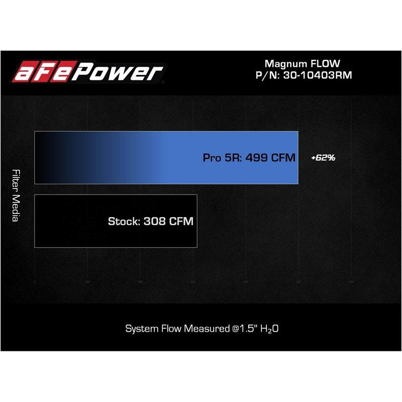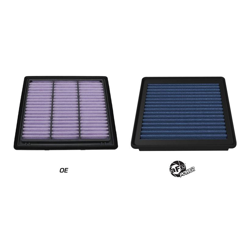 Magnum FLOW OE Replacement Air Filter w/ Pro 5R Media (Pair).This filter features five layers of pre-oiled cotton gauze media to provide maximum performance. Its progressive layering allows the filter to flow at high levels even when dirty. This media is perfect for street and/or track use. Pro 5R filters are easily recharged with aFe's POWER CLEANER and blue air filter oil. aFe POWER performance air filters use a rounded, evenly spaced pleat design which allows for more usable filter surface area, providing increased flow and greater dust holding capacity. This pliable sealing surface conforms to even the most uneven filter housing, making for a perfect filter fit and sealing surface every time. This design eliminates the use of gaskets or sealants and always goes back to its original form. All aFe POWER flat panel performance air filters are constructed with a full 360-degree polyurethane frame. Unlike other materials that degrade after repeated heat cycles in an engine bay, polyurethane maintains its original molded shape.