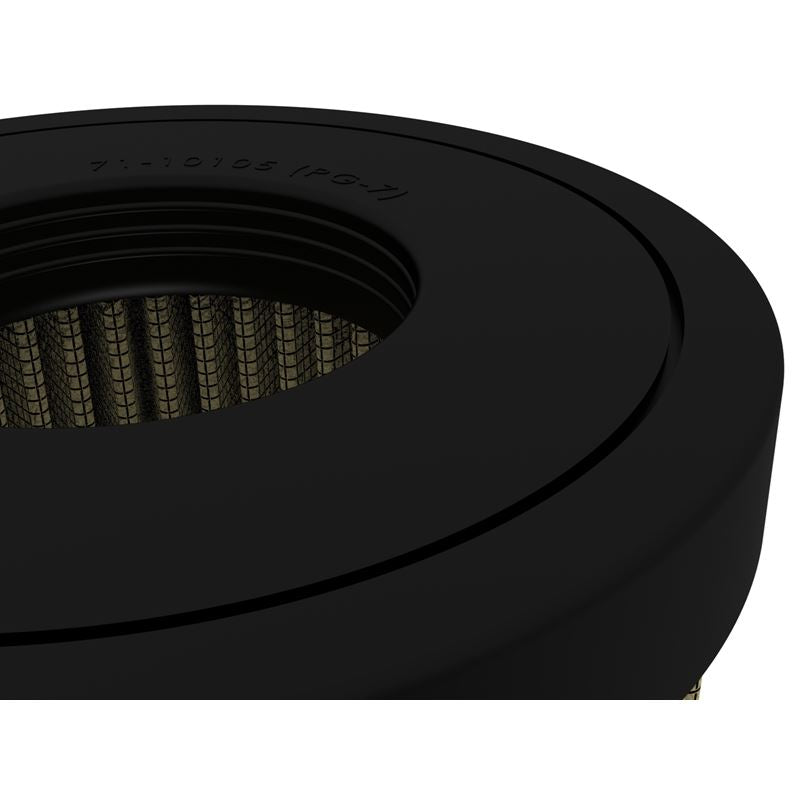 Magnum FLOW OE Replacement Air Filter w/ Pro GUARD 7 Media.Pro GUARD7 Media: This filter features 5-layers of progressively Finer Oiled Cotton Gauze and 2-layers of Finer Porosity Synthetic non-woven media for highest filtration efficiency for extreme dust environments. (US PAT 06811588) Rounded Open Pleats: aFe performance air filters use a rounded, evenly spaced pleat design which produces more usable filter surface area for increased flow and greater dust holding capacity. Progressive Bump Seal: This pliable sealing surface conforms to even the most uneven filter housing. This design eliminates the use of gaskets or sealants. The soft urethane construction always goes back to its original form so you will never compress the bump seal. This makes for a perfect filter fit and sealing surface every time. Full Urethane Housing: aFe Power performance air filters are constructed using polyurethane on top and bottom. This construction allows for a proper factory style fit with excellent filter strength.