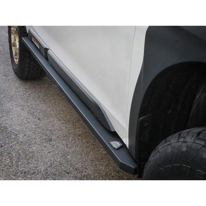 Introducing the Terra Guard Trail Step for your Subaru Outback: Your key to elevated adventures! Conquer any expedition with confidence using our large, high grip step pad for easy rooftop access. Durable steel construction ensures long-lasting strength, while the textured black powder-coated finish promises unmatched durability. Replacing factory cladding without drilling or cutting, our unique design utilizes original mounting points and allows for added ground clearance. Unlock the potential of your Outback and elevate your journeys with the Terra Guard Trail Step - where functionality meets style. Our high grip step provides a secure platform to gain access to roof top storage and gear. Replaces factory lower plastic cladding, utilizing original mounting points with no drilling or cutting required. Slotted drain holes in pinch seam rail allow for water drainage. All steel construction for long lasting strength and durability. Finished in a textured black powder coating not only ensures long-lasting durability but also adds a touch of rugged elegance to your vehicle's appearance.
