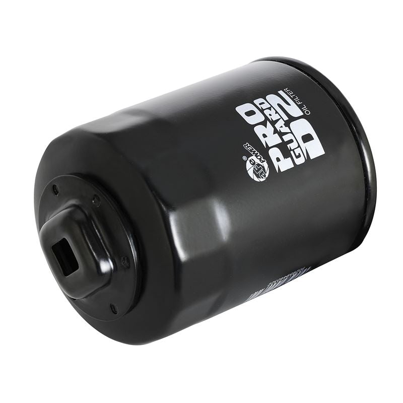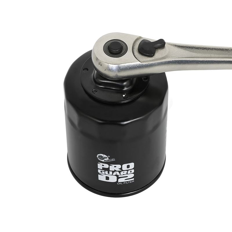 And even though the Pro Guard D2 Oil Filter is designed for long service life, aFe didn't forget about filter removal. To make sure you don't have to wrestle with a stuck filter, aFe welded a 1" outside, 3/8" inside nut/ratchet drive fitting to the top of the filter canister. This way the filter can be easily removed with a socket or ratchet.