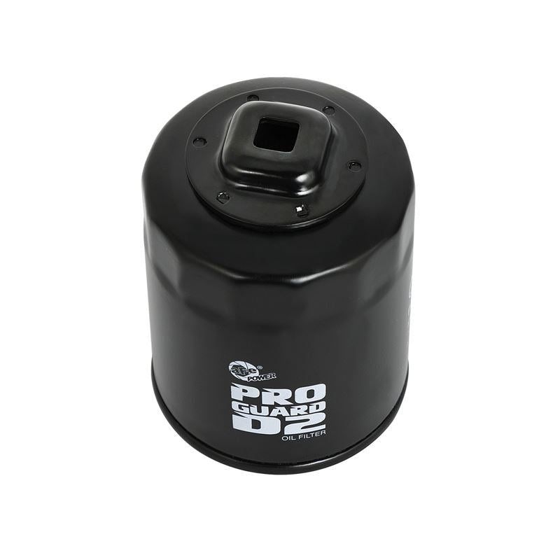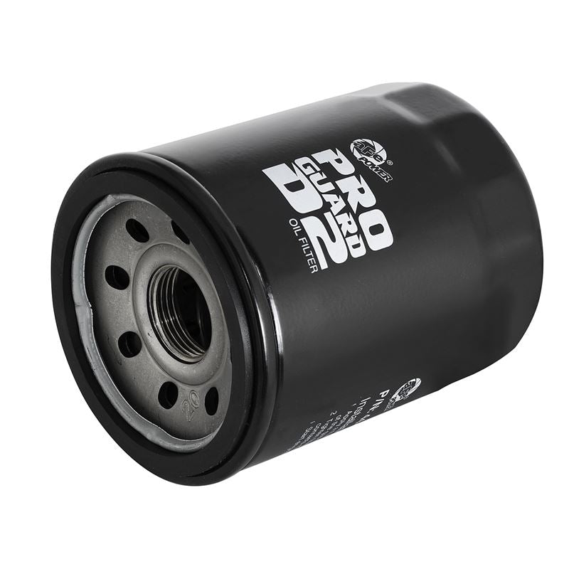 ProGuard D2 Oil Filter (44-LF016) by aFe. Pro-GUARD D2 Oil Filters deliver increased flow and efficiency that are demanded in the Diesel environment. This oil filter uses a synthetic media for maximum filtration and minimal flow restriction. The Pro-GUARD D2 Oil Filters are direct OE replacement filters which utilize the factory canisters to ensure a proper fit and hassle-free installation.