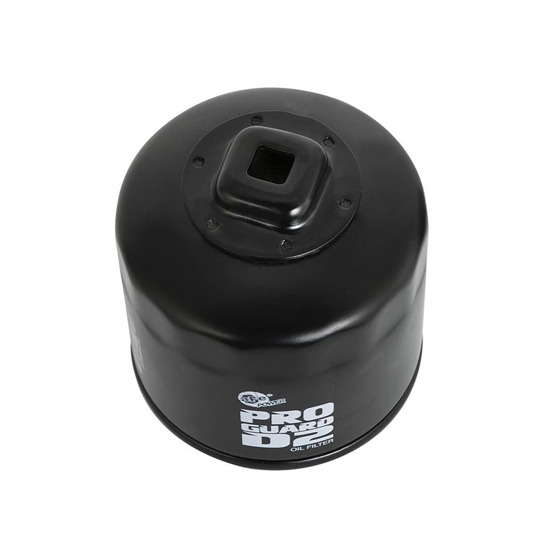 ProGuard D2 Oil Filter by aFe. Pro-GUARD D2 Oil Filters deliver increased flow and efficiency that are demanded in the Diesel environment. This oil filter uses a synthetic media for maximum filtration and minimal flow restriction. The Pro-GUARD D2 Oil Filters are direct OE replacement filters which utilize the factory canisters to ensure a proper fit and hassle-free installation.