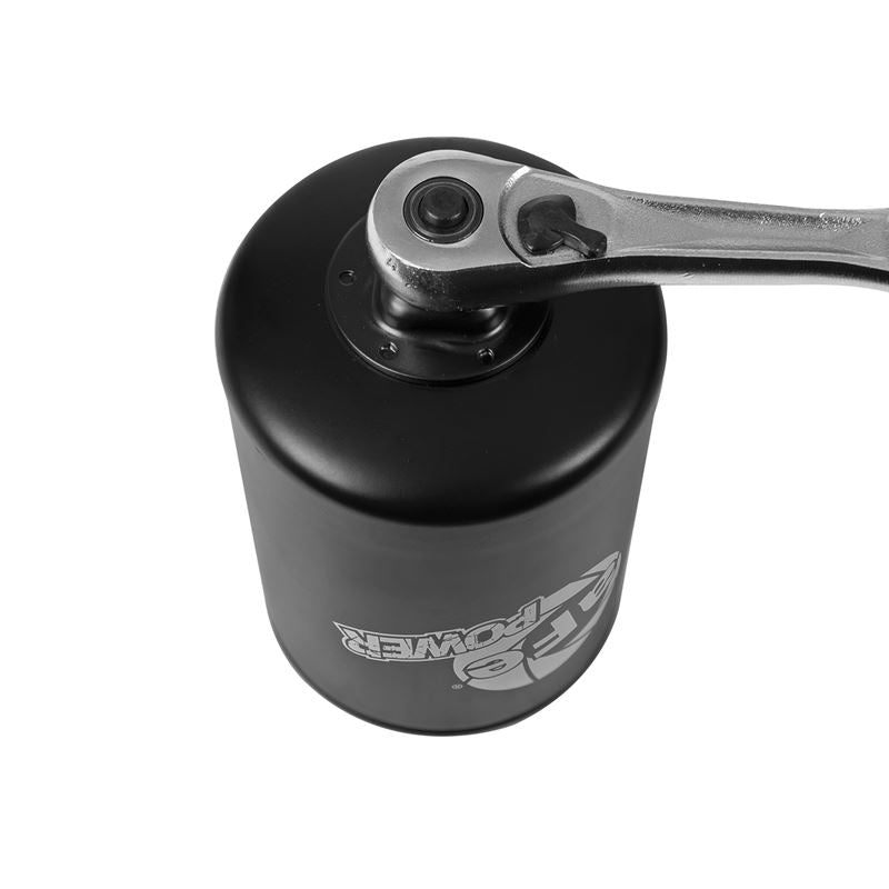 And even though the Pro Guard D2 Oil Filter is designed for long service life, aFe didn't forget about filter removal. To make sure you don't have to wrestle with a stuck filter, aFe welded a 1" outside, 3/8" inside nut/ratchet drive fitting to the top of the filter canister. This way the filter can be easily removed with a socket or ratchet.