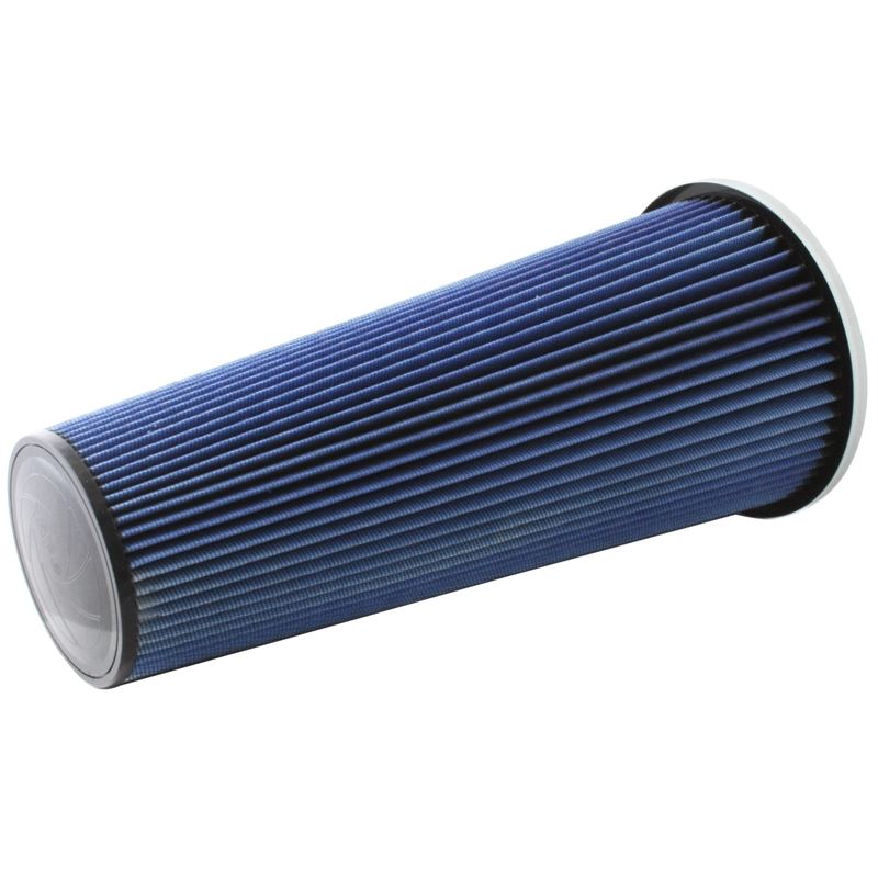 ProHDuty Pro 5R Round Tapered Blue Air Filter (70-50004) by aFe. With five layers of progressively finer mesh cotton gauze media between 100% polyurethane top and base, the aFe Pro 5R heavy duty oiled? replacement filter provides excellent airflow for improved performance for Cummins Onan diesel RV generators and other small diesel-powered utility vehicles. Washable and reusable for multiple cleanings, the tall, open, evenly spaced pleats provide excellent dust holding capacity for longer service cycle between cleanings. Pliable polyurethane flange with integrated bumps insures tight, no leak seal over the life of the filter. The Pro 5R air filter has a filtration efficiency of 98.6%.