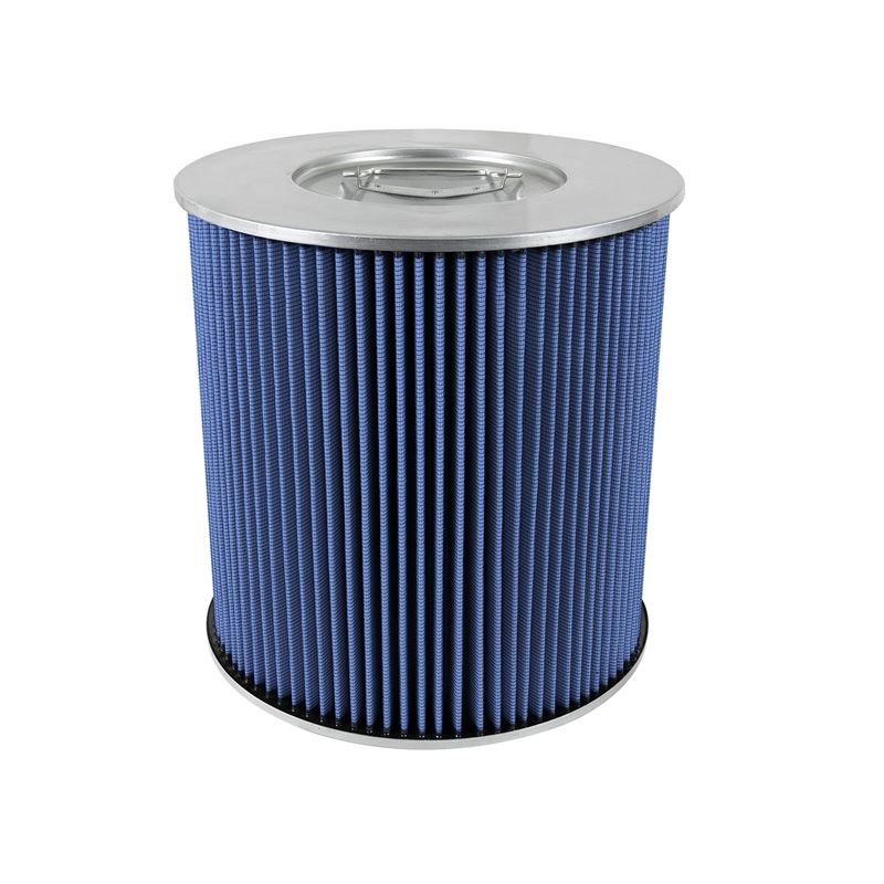 ProHDuty Pro 5R Round Blue Air Filter (70-50007) by aFe. With five layers of progressively finer mesh cotton gauze media between 100% polyurethane top and base, the aFe Pro 5R heavy duty oiled? replacement filter provides excellent airflow for improved performance for Cummins Onan diesel RV generators and other small diesel-powered utility vehicles. Washable and reusable for multiple cleanings, the tall, open, evenly spaced pleats provide excellent dust holding capacity for longer service cycle between cleanings. Pliable polyurethane flange with integrated bumps insures tight, no leak seal over the life of the filter. The Pro 5R air filter has a filtration efficiency of 98.6%.