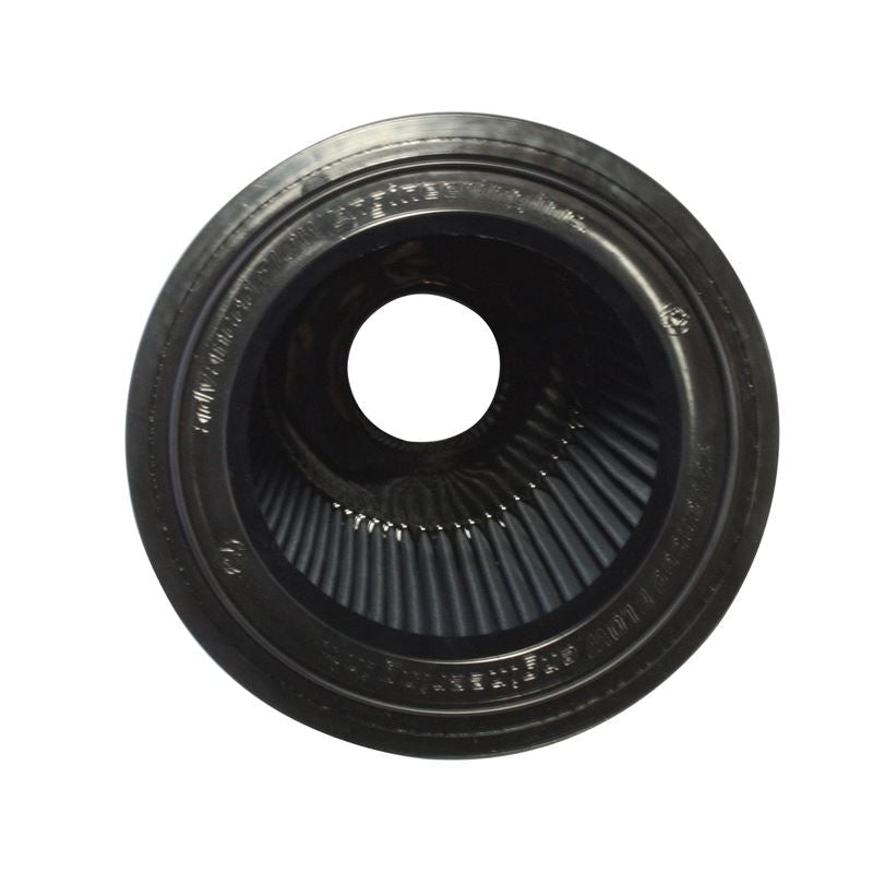 ProHDuty Pro 5R Round Blue Air Filter (70-50009) by aFe. With five layers of progressively finer mesh cotton gauze media between 100% polyurethane top and base, the aFe Pro 5R heavy duty oiled? replacement filter provides excellent airflow for improved performance for Cummins Onan diesel RV generators and other small diesel-powered utility vehicles. Washable and reusable for multiple cleanings, the tall, open, evenly spaced pleats provide excellent dust holding capacity for longer service cycle between cleanings. Pliable polyurethane flange with integrated bumps insures tight, no leak seal over the life of the filter. The Pro 5R air filter has a filtration efficiency of 98.6%.