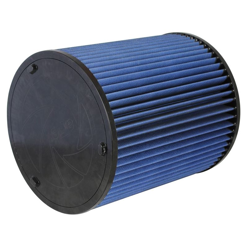 ProHDuty Pro 5R Round Blue Air Filter (70-50017) by aFe. With five layers of progressively finer mesh cotton gauze media between 100% polyurethane top and base, the aFe Pro 5R heavy duty oiled? replacement filter provides excellent airflow for improved performance for Cummins Onan diesel RV generators and other small diesel-powered utility vehicles. Washable and reusable for multiple cleanings, the tall, open, evenly spaced pleats provide excellent dust holding capacity for longer service cycle between cleanings. Pliable polyurethane flange with integrated bumps insures tight, no leak seal over the life of the filter. The Pro 5R air filter has a filtration efficiency of 98.6%.