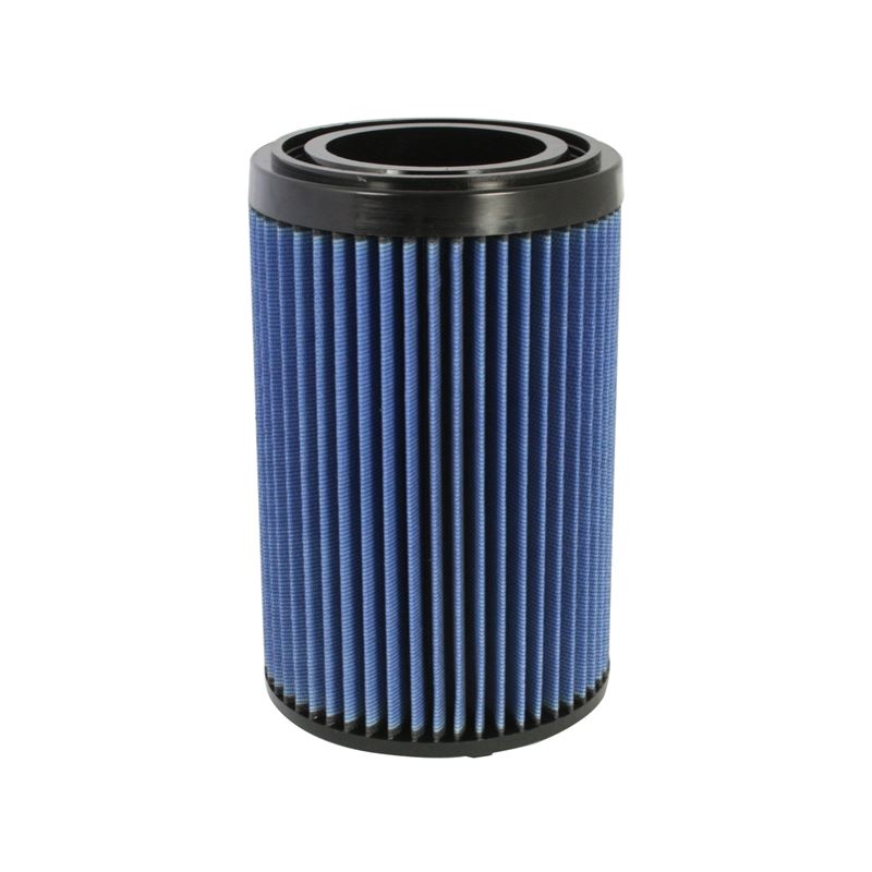 ProHDuty Pro 5R Round Blue Air Filter (70-50027) by aFe. With five layers of progressively finer mesh cotton gauze media between 100% polyurethane top and base, the aFe Pro 5R heavy duty oiled? replacement filter provides excellent airflow for improved performance for Cummins Onan diesel RV generators and other small diesel-powered utility vehicles. Washable and reusable for multiple cleanings, the tall, open, evenly spaced pleats provide excellent dust holding capacity for longer service cycle between cleanings. Pliable polyurethane flange with integrated bumps insures tight, no leak seal over the life of the filter. The Pro 5R air filter has a filtration efficiency of 98.6%.