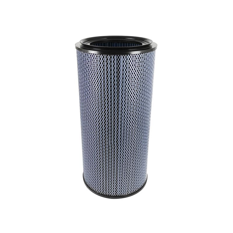 ProHDuty Pro 5R Round Blue Air Filter (70-50042) by aFe. With five layers of progressively finer mesh cotton gauze media between 100% polyurethane top and base, the aFe Pro 5R heavy duty oiled? replacement filter provides excellent airflow for improved performance for Cummins Onan diesel RV generators and other small diesel-powered utility vehicles. Washable and reusable for multiple cleanings, the tall, open, evenly spaced pleats provide excellent dust holding capacity for longer service cycle between cleanings. Pliable polyurethane flange with integrated bumps insures tight, no leak seal over the life of the filter. The Pro 5R air filter has a filtration efficiency of 98.6%.