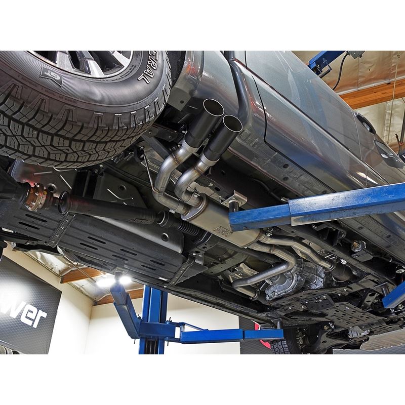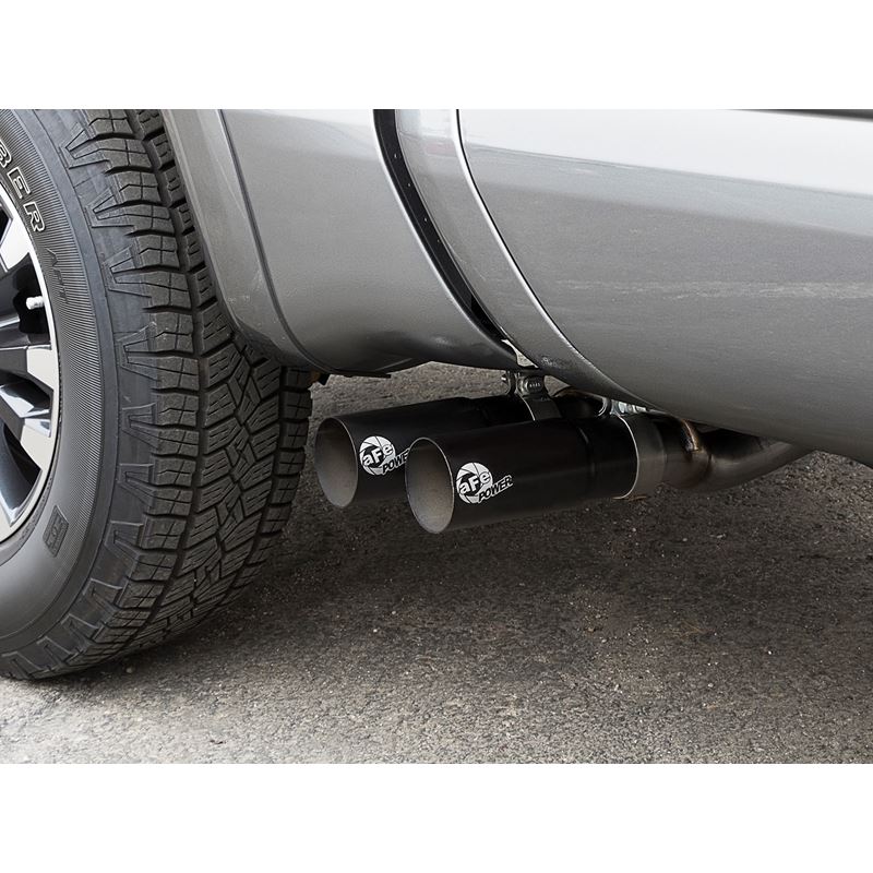 The tips come with unique laser-etched aFe Power logos on the side and are constructed from stainless steel for durability. The exhaust system is constructed from 3" MIG-welded, mandrel bent stainless steel tubing for maximum flow, increased horsepower and torque, outflowing the factory exhaust system by up to 30%.