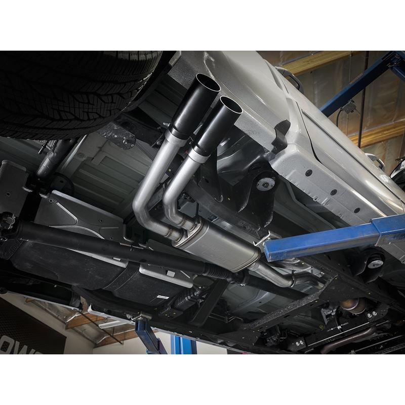 The tips come with unique laser-etched aFe Power logos on the side and are constructed from stainless steel for durability. The exhaust system is constructed from 3" MIG-welded, mandrel bent stainless steel tubing for maximum flow, increased horsepower and torque, outflowing the factory exhaust system by up to 30%.
