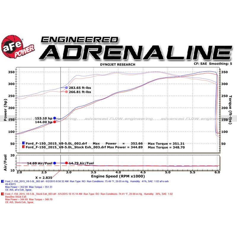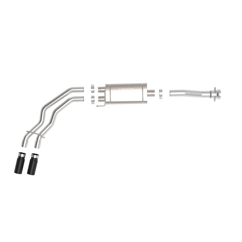 This system produced gains of up to +9 HP and +17 lbs. x Ft. TQ., as measured on our in-house dyno. This cat-back exhaust system is constructed of 3 IN - 2-1/2 IN mandrel-bent 409 stainless steel tubing for maximum strength and durability. This system features a high-flow 409 stainless steel muffler, producing a aggressive sound. Finishing off this exhaust system are dual 3-1/2 IN diameter black 304 stainless steel clamp-on exhaust tips. The tips features a laser etched aFe POWER logo for a unique style. This system produces an aggressive sound unleashing all available horsepower and torque. Utilizing a factory style flange and hangers this system is a direct bolt-on system, which requires no cutting or modifications for a hassle-free installation. Utilizing state-of-the-art computer-aided design technology, this exhaust system is designed for custom, high tolerance factory fitment. 100% MIG-Welded for race-proven strength and durability.