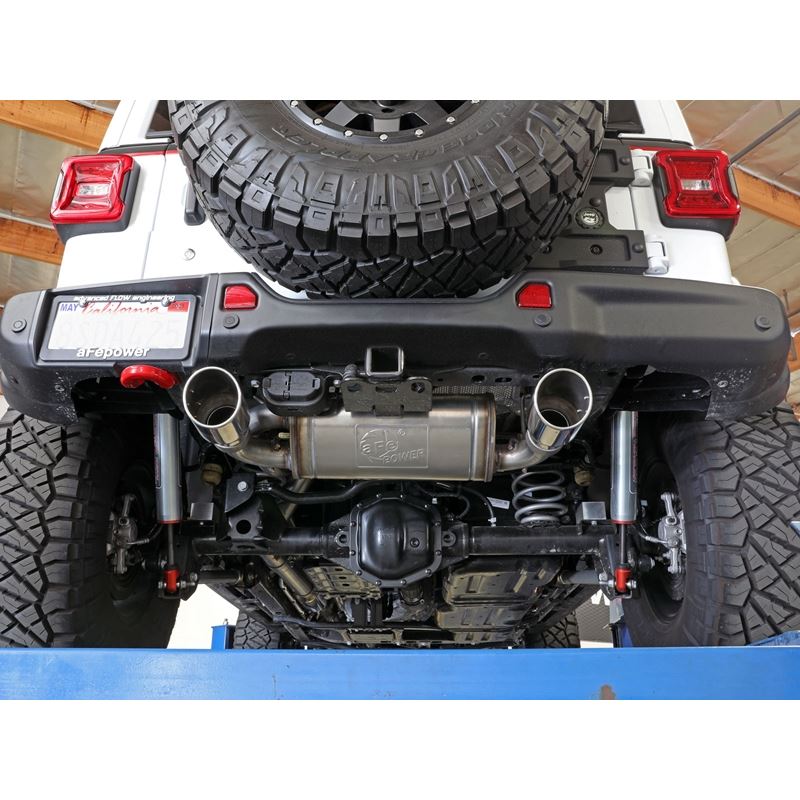 aFe Rebel Series 3 IN to 2-1/2 IN 409 Stainless Steel Cat-Back Exhaust w/ Polish Tip for 2018-2021 Jeep Wrangler(49-48096-P)