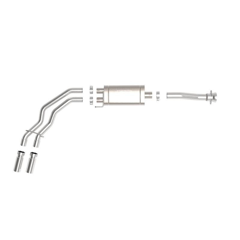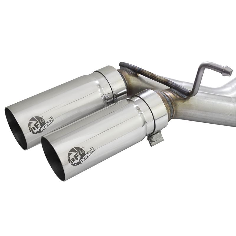 This system produced gains of up to +9 HP and +17 lbs. x Ft. TQ., as measured on our in-house dyno. This cat-back exhaust system is constructed of 3 IN - 2-1/2 IN mandrel-bent 409 stainless steel tubing for maximum strength and durability. This system features a high-flow 409 stainless steel muffler, producing a aggressive sound. Finishing off this exhaust system are dual 3-1/2 IN diameter polished 304 stainless steel clamp-on exhaust tips. The tips features a laser etched aFe POWER logo for a unique style. This system produces an aggressive sound unleashing all available horsepower and torque. Utilizing a factory style flange and hangers this system is a direct bolt-on system, which requires no cutting or modifications for a hassle-free installation. Utilizing state-of-the-art computer-aided design technology, this exhaust system is designed for custom, high tolerance factory fitment. 100% MIG-Welded for race-proven strength and durability.