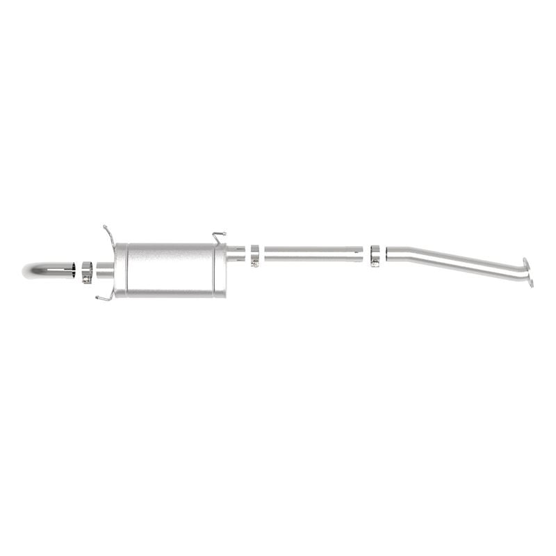This cat-back exhaust system is constructed of 2-1/2" mandrel-bent 409 stainless steel tubing for maximum strength and durability. Finishing off this exhaust system is a 2-1/2" diameter 304 stainless steel clamp-on exhaust tip. The tip features a laser etched aFe POWER logo for a unique style. This system produces a deep sound unleashing all available horsepower and torque. Utilizing a factory style flange and hangers this system is a direct bolt-on system, which requires no cutting or modifications for a hassle-free installation. This cat-back exhaust system is finished off with a hi-tuck tip that is developed to give you extra clearance during extreme angle climbs or descents protecting exhaust over rough terrain. Utilizing state-of-the-art computer-aided design technology, this exhaust system is designed for custom, high tolerance factory fitment. 100% MIG-Welded for race-proven strength and durability.