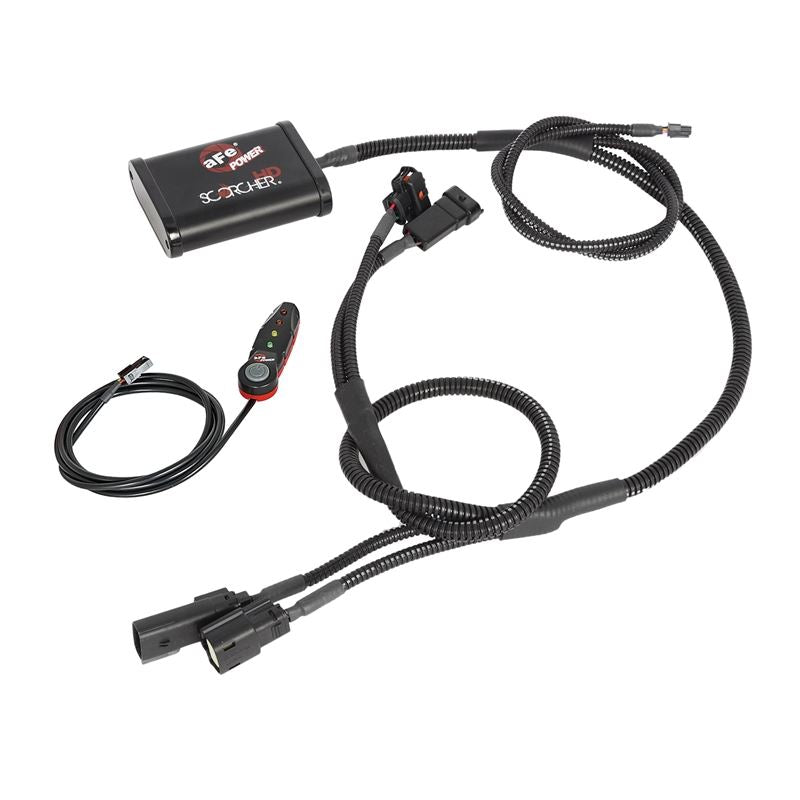 Scorcher HD Module by aFe. HP Gain: +50 hp, TQ Gain: +85 lbs. x ft. A simple 30 minute install will give you a huge increase in power. The aFe POWER SCORCHER HD Module includes a high quality case & wire harness with factory style connectors for an easy plug & play installation. A LED light switch provides In-Cabin On-The-Fly power adjustments. The 4-Power settings are adjustable with one button and the LED light represent the settings: Stock (Green), Sport (Yellow), Sport+ (Orange) and Race (Red) . This performance module increase turbo boost and fuel pressure. It improves vehicle performance and throttle response.