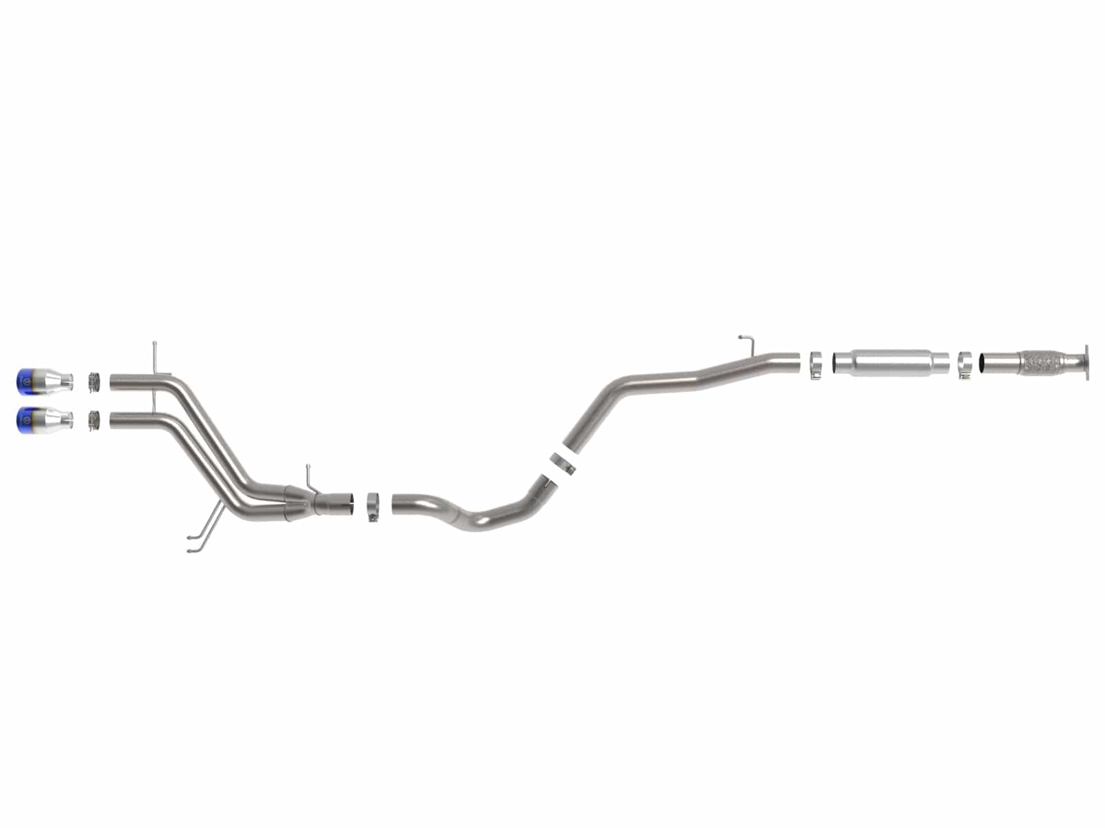 This system produced gains of up to +10 HP and +9 lbs. x Ft. TQ., as measured on our in-house dyno. This cat-back exhaust system is constructed of 3 IN - 2-1/2 IN mandrel-bent 304 stainless steel tubing for maximum strength and durability. Finishing off this exhaust system are dual 4" diameter blue flame 304 stainless steel clamp-on exhaust tips. The tips features a laser etched Takeda logo for a unique style. This system produces a mild sound unleashing all available horsepower and torque. Utilizing a factory style flange and hangers this system is a direct bolt-on system, which requires no cutting or modifications for a hassle-free installation. This cat-back exhaust system uses a heavy duty flex pipe with an internal interlock liner for added strength and durability. Utilizing state-of-the-art computer-aided design technology, this exhaust system is designed for custom, high tolerance factory fitment. MIG-Welded for race-proven strength and durability.