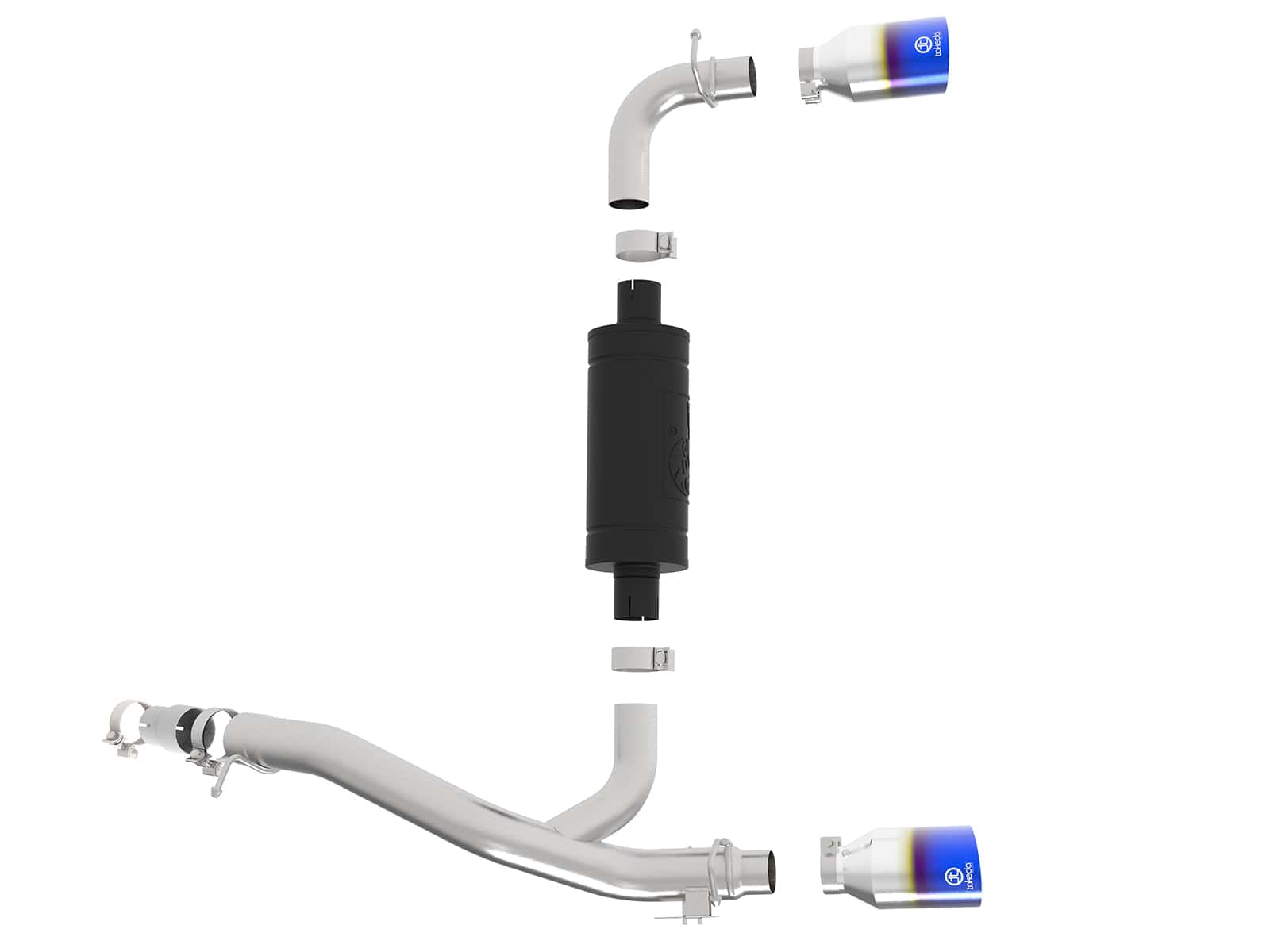 aFe Takeda 3in 304 SS Axle-Back Exhaust System w/ Blue Flame Tip 16-18 Ford Focus RS 2.3L (t)