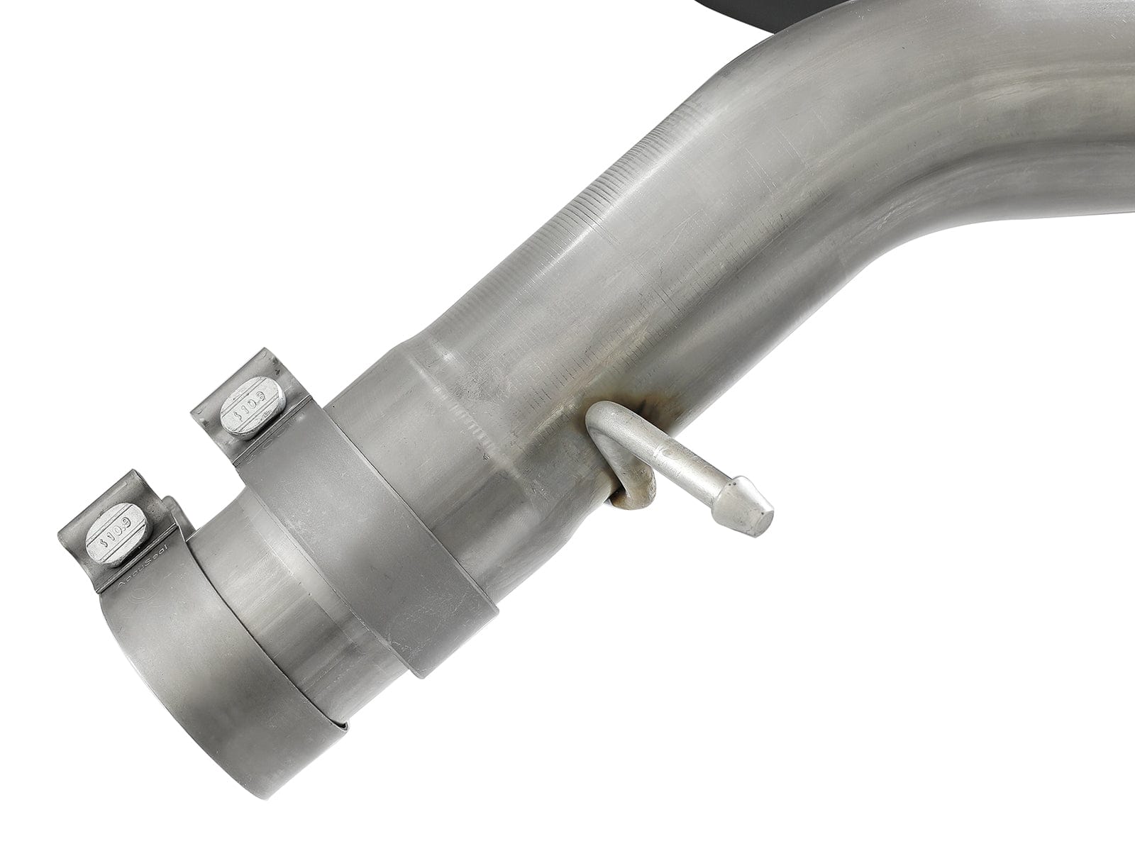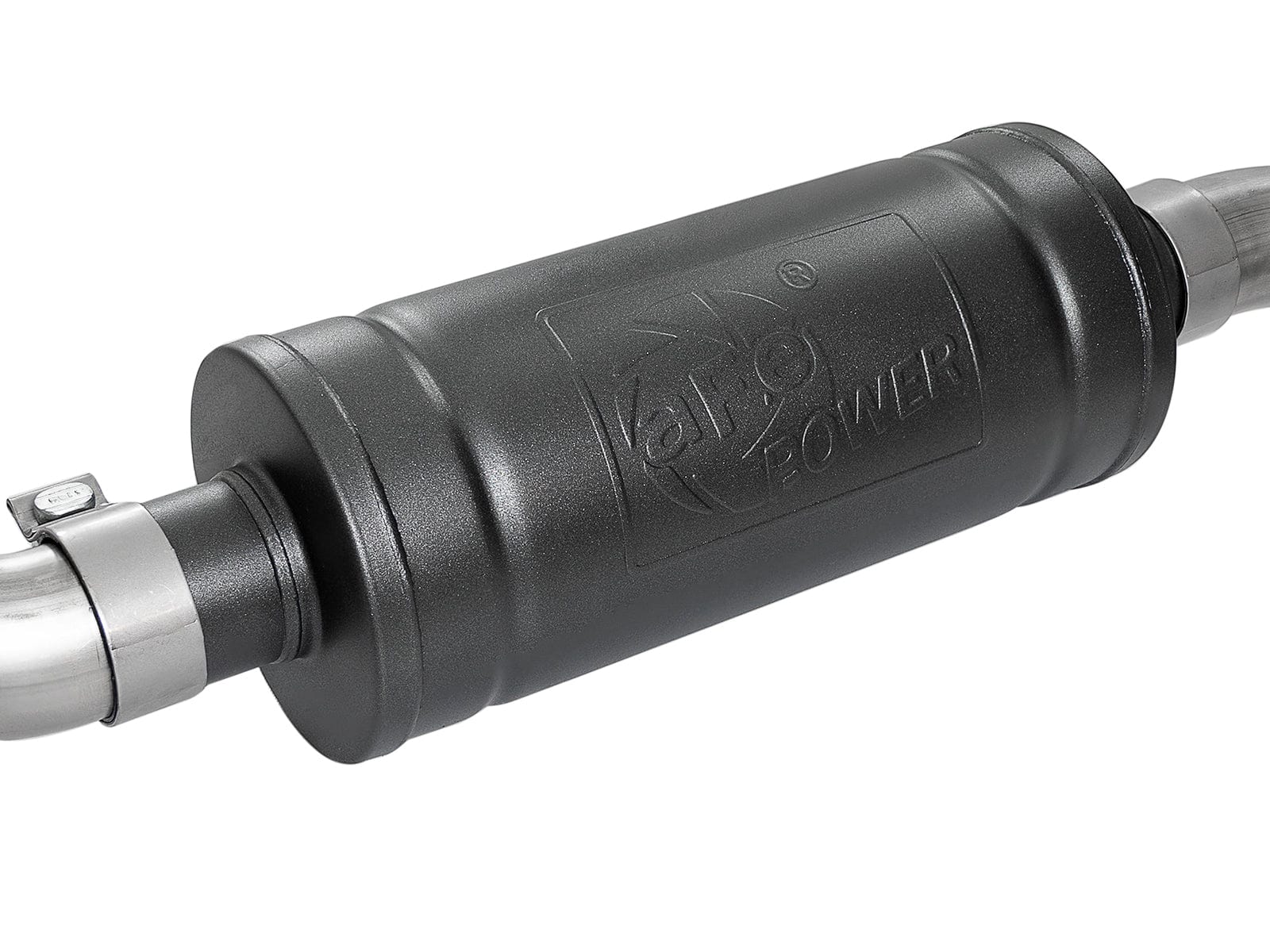 Power, sound, & style. This Takeda axle-back by aFe POWER delivers dyno-proven performance. Constructed from mandrel bent 304 stainless-steel, it features black metallic heat resistant coating on its muffler and offers sound adjustability, thanks to its factory style active exhaust valve. This system is finished off with aFe POWER branded 4-1/2" carbon fiber exhaust tips for a stylish look.