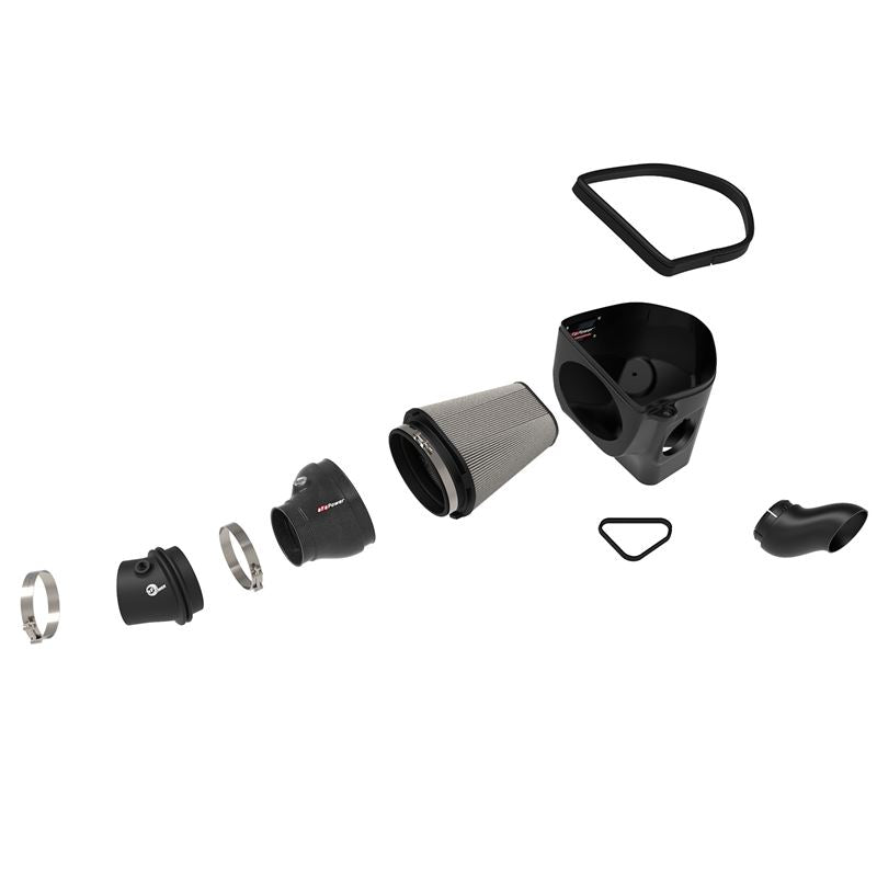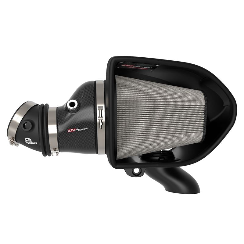 Magnum Force Stage 2 Track Series Aluminum Black Carbon Fiber Cold Air Intake System with Pro Dry S Filter by aFe. The aFe Stage 2 Cold Air Intake System replaces your entire factory air intake system with a large high-flow aFe air filter, open element airbox/heat shield and a smoothly contoured, less restrictive intake tube. This system enables your engine to take in huge quantities of dense, cool, oxygen laden air. The result is better combustion, increased horsepower and torque, and a noticeable gain in performance.