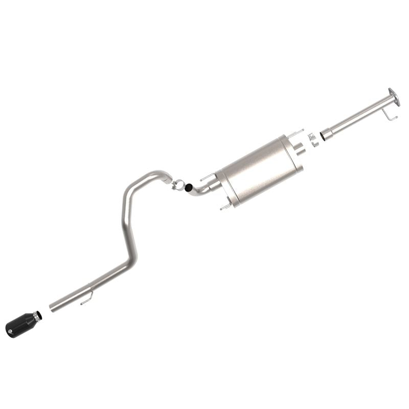 This cat-back exhaust system is constructed of 2-1/2 IN mandrel-bent 304 stainless steel tubing for maximum strength and durability. This system features a high-flow 304 stainless steel muffler, producing an aggressive sound. Muffler finish may vary. Finishing off this exhaust system is a 4-1/2 IN diameter black 304 stainless steel clamp-on exhaust tip. The tip features a laser etched aFe POWER logo for a unique style. This system produces an aggressive sound unleashing all available horsepower and torque. Utilizing a factory style flange and hangers this system is a direct bolt-on system, which requires no cutting or modifications for a hassle-free installation. Utilizing state-of-the-art computer-aided design technology, this exhaust system is designed for custom, high tolerance factory fitment. 100% MIG-Welded for race-proven strength and durability.