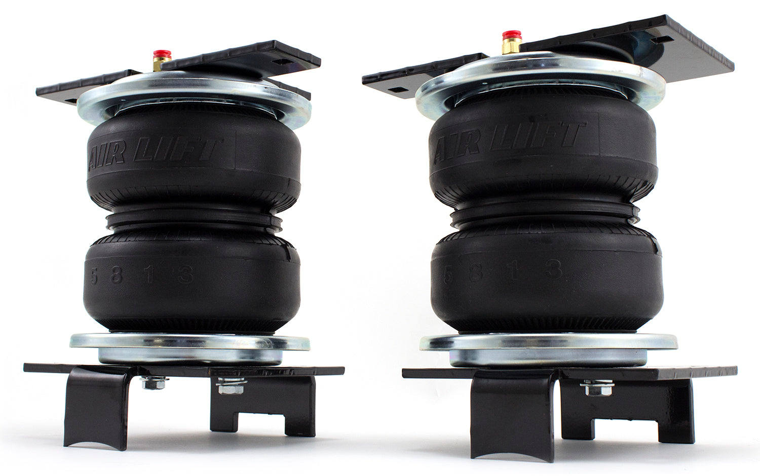 Air Lift adjustable air helper springs level your load, and give your Half-Ton truck a safer, more comfortable ride. Air springs are easy to install between your axle and the vehicle frame. Just add air when towing or hauling a heavy load, and reduce air pressure when unloaded