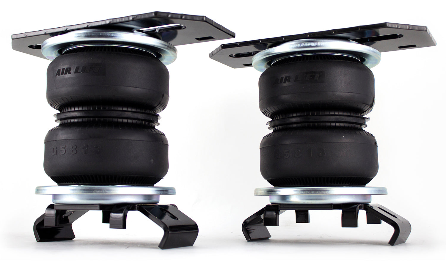 Air Lift adjustable air helper springs level your load, and give your Half-Ton truck a safer, more comfortable ride. Air springs are easy to install between your axle and the vehicle frame. Just add air when towing or hauling a heavy load, and reduce air pressure when unloaded