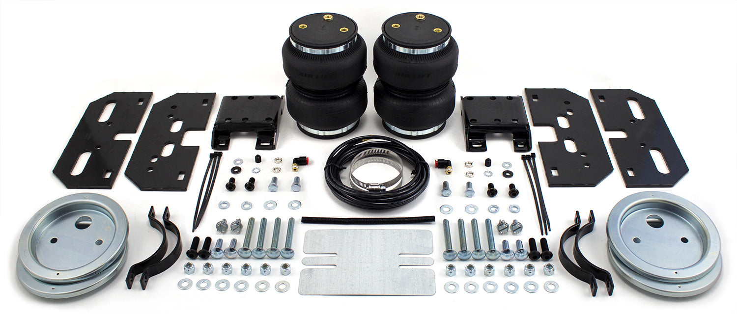 Air Lift adjustable air helper springs level your load, and give your Half-Ton truck a safer, more comfortable ride. Air springs are easy to install between your axle and the vehicle frame. Just add air when towing or hauling a heavy load, and reduce air pressure when unloaded