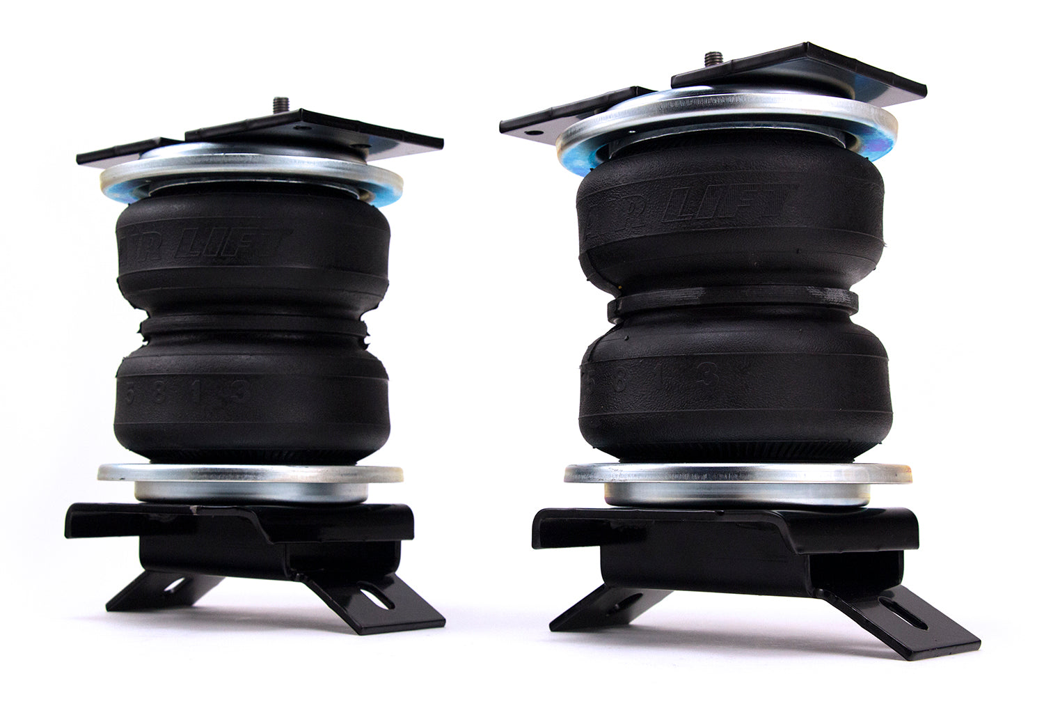 Air Lift adjustable air helper springs level your load, and give your Half-Ton truck a safer, more comfortable ride. Air springs are easy to install between your axle and the vehicle frame. Just add air when towing or hauling a heavy load, and reduce air pressure when unloaded
