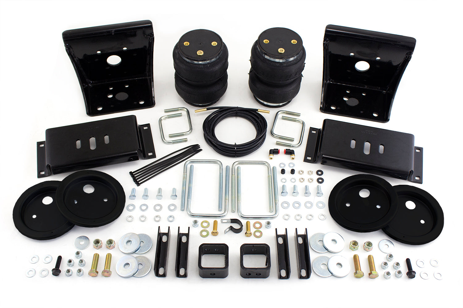 LoadLifter 5000 ULTIMATE adjustable air spring kits feature all of the benefits of our heaviest rated air spring with the addition of an internal jounce bumper inside the spring for the ultimate in ride comfort. An Air Lift exclusive product! Fits vehicles with in-bed hitches. Tow and haul the heaviest loads with safety and comfort with LoadLifter 5000 ULTIMATE. Works with vehicle's leaf springs to provide up to 5,000 lbs. of front load leveling capacity and keeps the vehicle riding stable, level and comfortable whether loaded or unloaded. Fully adjustable from 5 to 100 PSI. The closed-cell urethane foam jounce bumper inside the ULTIMATE air springs provide a cushion of air that absorbs shock, eliminates harsh jarring on rough roads and protects vehicles carrying heavy loads. Never bottom out again with the ULTIMATE! LoadLifter 5000 ULTIMATE air springs are maintenance free! Safely run with zero air pressure because of the internal jounce bumper. Replaces factory jounce bumper that is sometimes removed when adding air springs. Easy to install in less than 2 hours. Includes industry-exclusive 60 Day No Questions Money Back Guarantee! Includes the most comprehensive Lifetime Warranty in the industry-covers all kit contents including brackets, fittings and air line. Air springs are built like a tire and are reinforced by durable, 2-ply fabric for maximum strength. Exclusive upper and lower roll plates included. Protect the springs from sharp edges, such as brackets or the frame. They increase load capacity up to 10%. The kit includes 2 air springs, brackets, air lines, Schrader valve and all of the hardware needed for installation. Includes fully illustrated instruction manual. Add an Air Lift on-board air compressor system to inflate and deflate air springs with the touch of a button from inside or outside of the vehicle. Air Lift is a 3rd generation family owned company that has been manufacturing the highest quality suspension products in Lansi