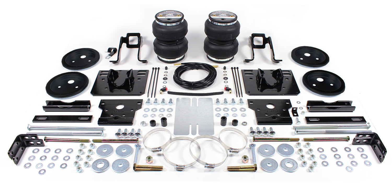 LoadLifter 5000 ULTIMATE adjustable air spring kits feature all of the benefits of our heaviest rated air spring with the addition of an internal jounce bumper inside the spring for the ultimate in ride comfort. An Air Lift exclusive product! Fits vehicles with in-bed hitches. Tow and haul the heaviest loads with safety and comfort with LoadLifter 5000 ULTIMATE. Works with vehicle's leaf springs to provide up to 5,000 lbs. of rear load leveling capacity and keeps the vehicle riding stable, level and comfortable whether loaded or unloaded. Fully adjustable from 5 to 100 PSI. The closed-cell urethane foam jounce bumper inside the ULTIMATE air springs provide a cushion of air that absorbs shock, eliminates harsh jarring on rough roads and protects vehicles carrying heavy loads. Never bottom out again with the ULTIMATE! LoadLifter 5000 ULTIMATE air springs are maintenance free! Safely run with zero air pressure because of the internal jounce bumper. Replaces factory jounce bumper that is sometimes removed when adding air springs. Easy to install in less than 2 hours. Requires no drilling into frame! Includes industry-exclusive 60 Day No Questions Money Back Guarantee! Includes the most comprehensive Lifetime Warranty in the industry-covers all kit contents including brackets, fittings and air line. Air springs are built like a tire and are reinforced by durable, 2-ply fabric for maximum strength. Exclusive upper and lower roll plates included. Protect the springs from sharp edges, such as brackets or the frame. They increase load capacity up to 10%. The kit includes 2 air springs, brackets, air lines, Schrader valve and all of the hardware needed for installation. Includes fully illustrated instruction manual. Add an Air Lift on-board air compressor system to inflate and deflate air springs with the touch of a button from inside or outside of the vehicle. Air Lift is a 3rd generation family owned company that has been manufacturing the highest quali