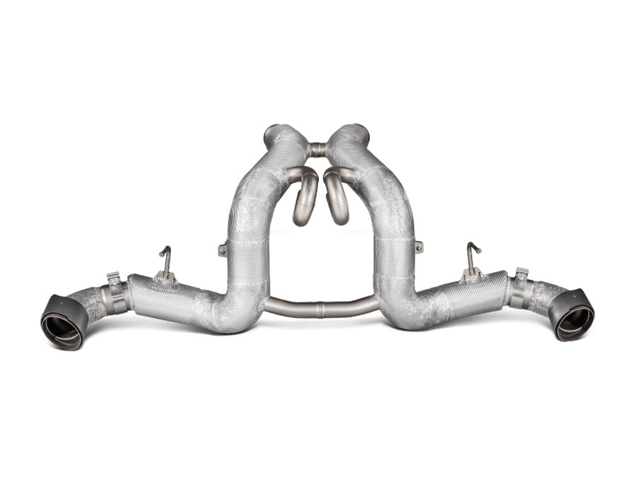An exquisite car deserves an exquisite exhaust, and the Slip-On Line (Titanium) for the McLaren is certainly that. It is made of special, lightweight, durable, and heat-resistant titanium alloys, all perfectly formed and shaped to fit the car. Bigger tubes deliver optimized gas flow, and the use of ultra-lightweight materials will significantly reduce the vehicle’s weight and enhance its handling. A distinctive coating offers an enhanced appearance, and the parts most exposed to heat feature special insulation for protection. With two flawlessly styled and finished handmade carbon-fiber tailpipes, which beautifully complement the titanium pipes, this exhaust is a work of art. It comes complete with a soundtrack that perfectly matches the car’s performance, ideally tuned to produce a unique sound color and the celebrated Akrapovič signature sound.