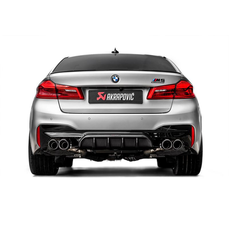 Built from high-grade lightweight titanium - with some parts cast in Akrapovic's own foundry - this system will reduce exhaust system's weight.Developed to deliver both power and torque gains throughout the range with most gain in lower rpm will improve responsiveness and drivability. The system delivers distinctly different sound from the stock system, most noticeable at shifting, backfiring and accelerating.The carbon-fibre tailpipes have been perfectly crafted and designed to fit beautifully within the optional carbon-fibre diffuser. Optional carbon-fibre mirror caps are also available to further enhance the car's appearance.The system is a simple plug-and-play operation to fit, and has been designed to meet ECE type approval.The optional Akrapovic Sound Kit is also available.For installing the slip-on system, the stock exhaust system has to be cut.Please read the instructions carefully before the start of the installation.This product fits also on BMW M5 Competition and CS 2022 models equipped with OPF/GPF.