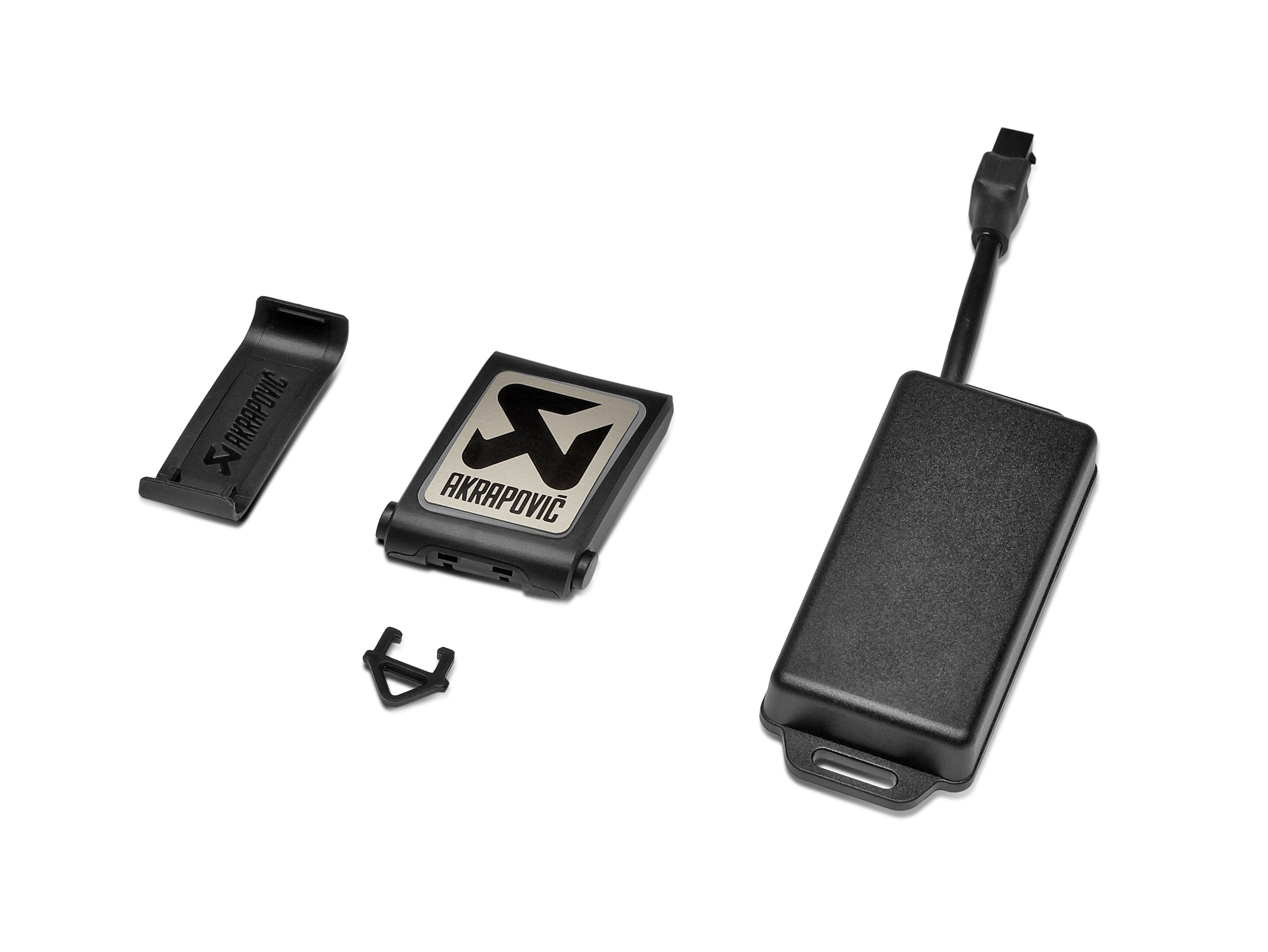 The optional Akrapovič Sound Kit enables owners of selected Akrapovič car exhausts to control the sound of the system from the cockpit of their machine. Using Akrapovič technology, drivers can easily switch between the quiet mode and a sportier sound. With the use of a receiver (already included in evolution system) to drive the actuators that open or close the valves at the end of the exhaust system, drivers can use the Sound Remote Controller or the new smartphone app (for iOS and Android) to regulate the valves.