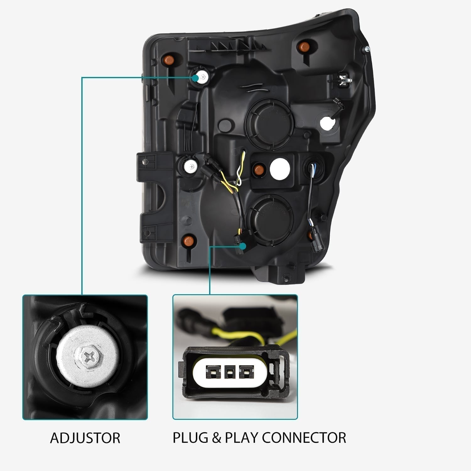 Introducing our 3rd gen Ford Super Duty LUXX-Series projector headlights, meticulously designed to elevate the appearance and functionality of your 3rd generation Super Duty truck. Drawing inspiration from the iconic design of the 4th gen Super Duty, these headlights seamlessly integrate modern features to provide enhanced visibility and style.At the forefront of our 3rd gen Ford Super Duty LUXX-Series projector headlights is the switchback LED light tube, which surrounds the main projector and serves as both a daytime running light (DRL) and a sequential turn signal. This innovative design not only enhances the visual appeal of your Super Duty but also improves safety by ensuring that your intentions are clearly communicated to other drivers on the road.In addition to the primary lighting elements, we've incorporated a clear lens in the middle of the headlights, reminiscent of the turn signal bulbs found in the 4th and 5th gen Super Duty models. This additional feature further enhances the functionality and aesthetics of the headlights, providing an extra layer of illumination and style.Furthermore, our 3rd gen Ford Super Duty LUXX-Series projector headlights come equipped with an activation light feature, which activates a subtle running light sequence when you unlock your Super Duty, adding a touch of sophistication to your Super Duty's exterior.For optimal visibility and performance, the top projector is dedicated to low beam illumination, while the bottom projector delivers powerful high beam lighting. Both low and high beams utilize advanced LED chips developed by our own factory, ensuring exceptional brightness and longevity.With their premium design, advanced features, and superior performance, our 3rd gen Ford Super Duty LUXX-Series projector headlights are the perfect choice for discerning truck enthusiasts looking to upgrade their vehicle's lighting system. Experience the ultimate combination of style and functionality with our Ford Super Duty LUXX-Series projector headlights for the 3rd gen Super Duty.