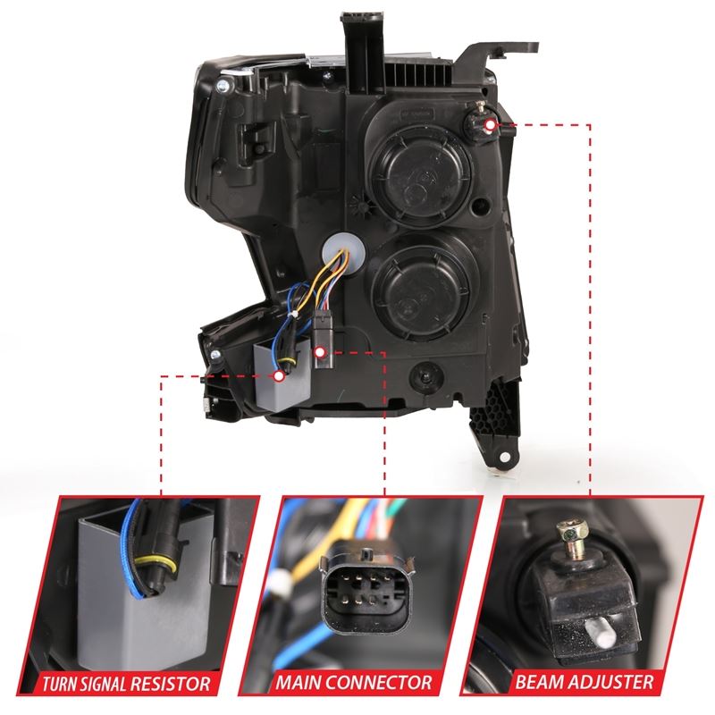 ANZO USA LED Crystal Headlight, w/Plank Style, Black Clear w/Sequential Amber, Pair, (111478)