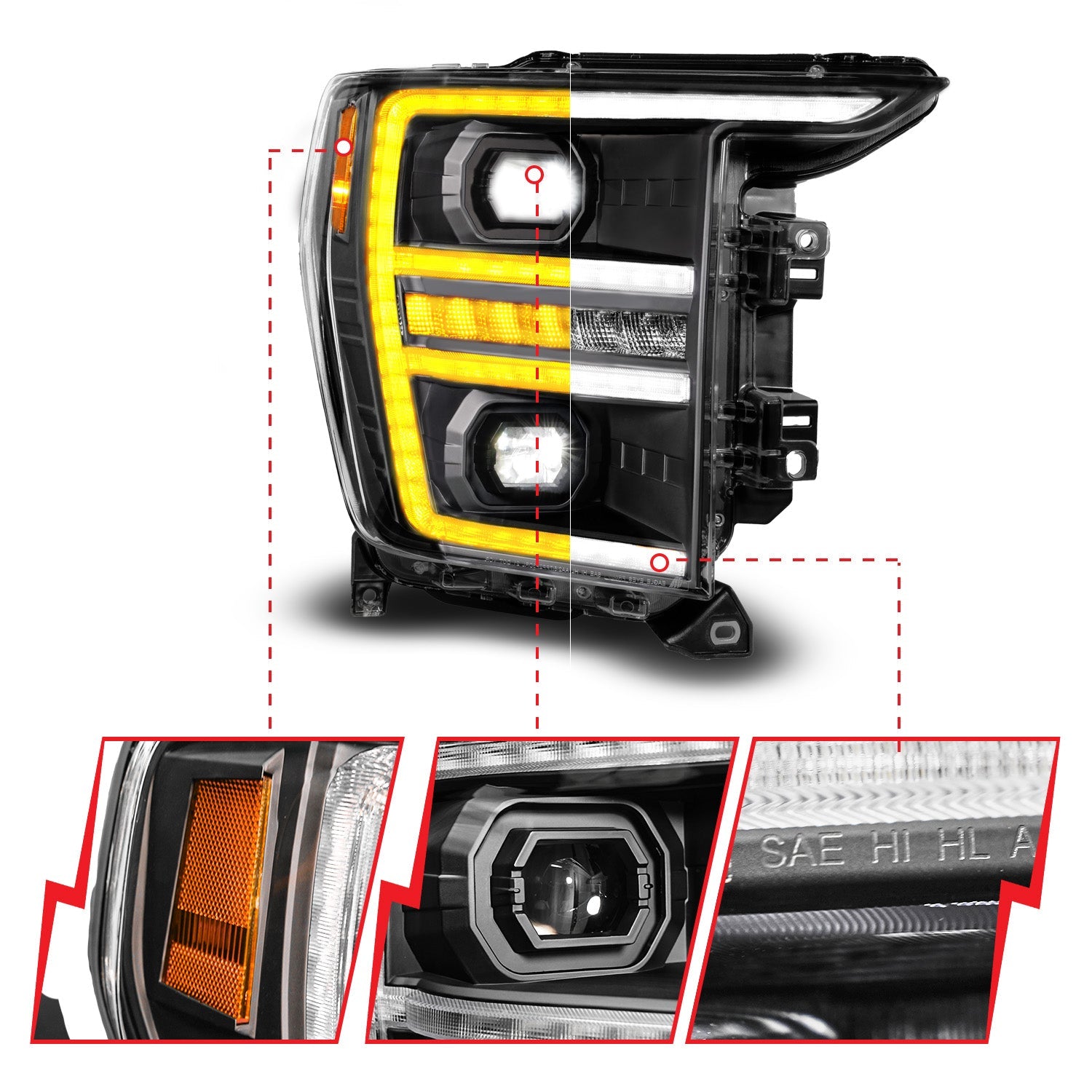 ANZO USA LED Projector Headlight w/Switchback+Sequential Black (Passenger Side Only) for 21-23 Ford F150 (111594-R)